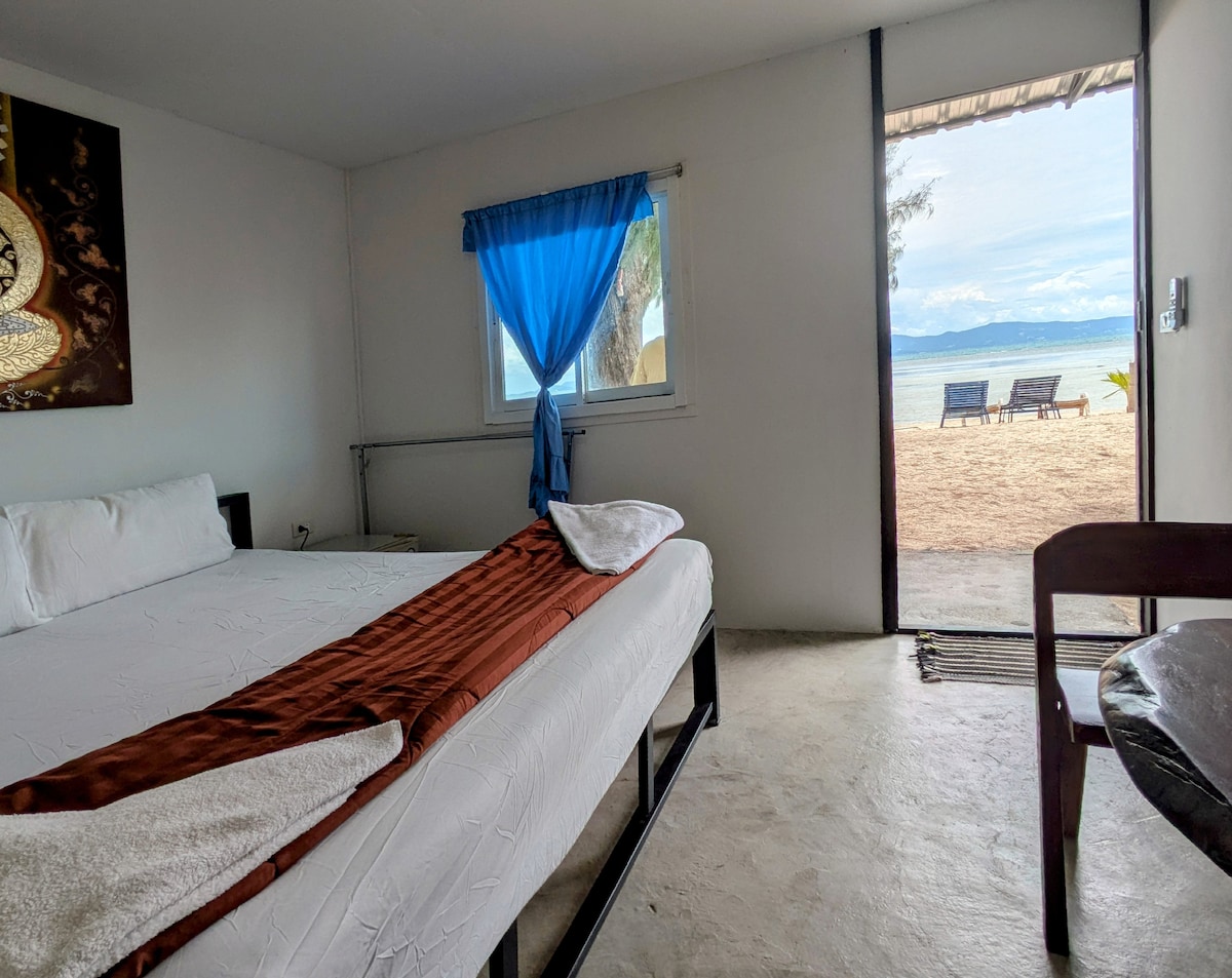 Experience the essence of island life at our cozy beachfront tiny home studio on Hin Kong Beach, Koh Phangan. Enjoy a comfortable king-size bed with 100% cotton bedding, ensuite indoor hot/cold shower, AC, minibar, wardrobe, a private terrace and front yard with direct beach access. A hot water kettle, along with toiletries like shampoo, bath soap, conditioner, and fresh towels are provided. Embrace the simplicity of tropical living and let your worries drift away in our private cozy nest!