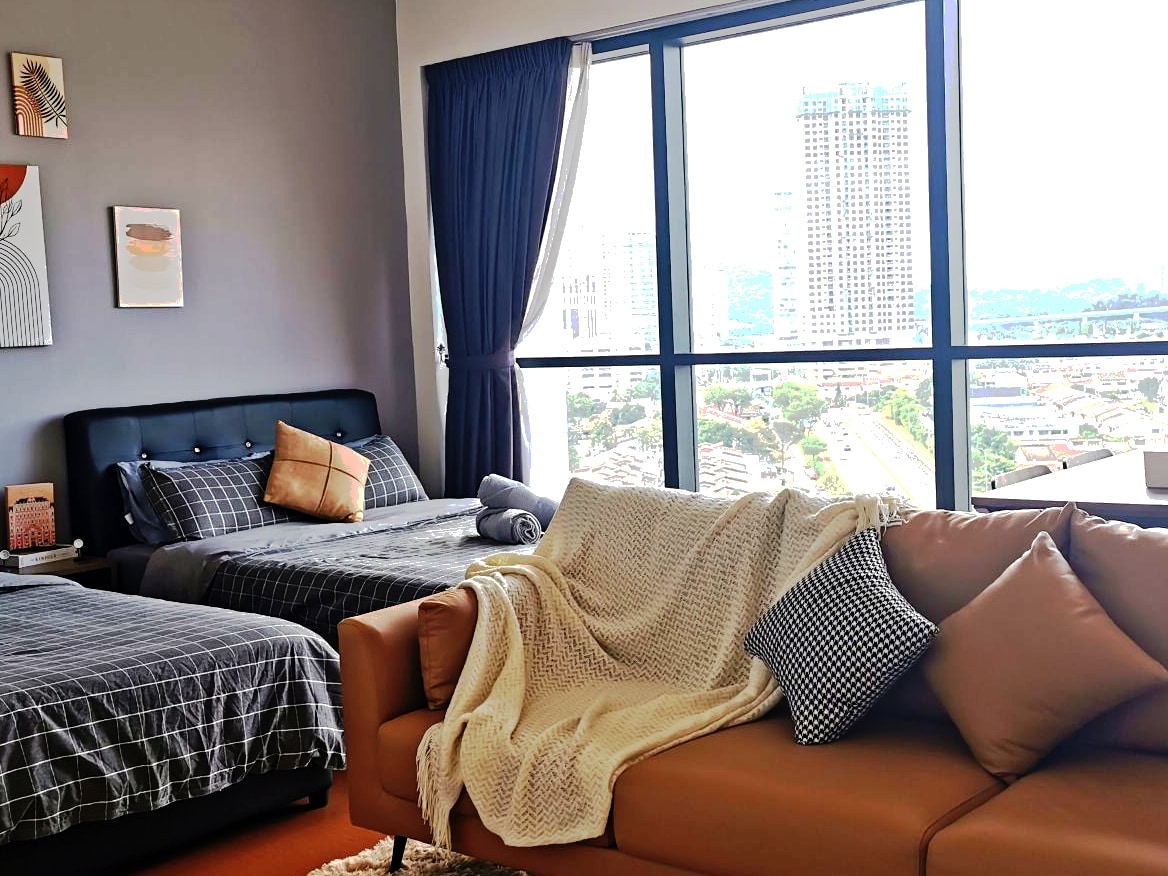 Relax with the whole family -Super Spacious 2Bed Studio unit -Speedy and easy check-in process -100Mbps Super High speed WIFI -Smart TV (can chrome-cast or mirroring with your smart phone.) -Quality Towels , bed sheets and mattress -1 free parking -24hr security -Free access to pool, gym and rooftop garden -Only 20min to KLCC -10mins to Sunway Pyramid -6mins to Paradigm mall,Tesco and Giant Hypermarket. -中文房东at this peaceful place to stay.