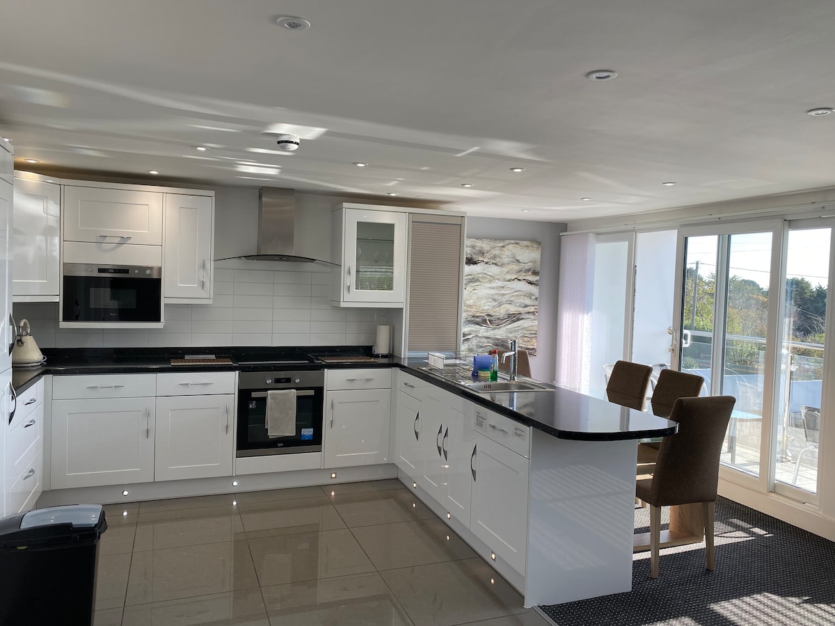 Enjoy a luxurious stay with a stunning view at this hidden gem of a home in the charming and historic town of Penryn, right by Falmouth. Revel in an awe-inspiring panoramic view from the comfort of your bed and unwind in a lavish bathroom equipped with a waterfall shower. The property features a spacious, fully-furnished & equipped contemporary kitchen, stylish living room, EV charger and a decking space for a tranquil leisurely experience. Ideal for couples, families, and professionals alike.
