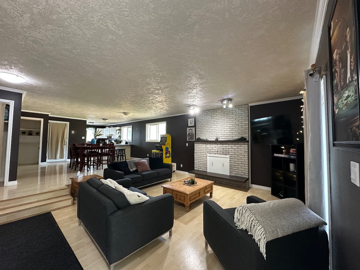 Imagine the perfect stay in Edmonton, where comfort, fun, and convenience come together in a home just minutes from the city’s top attractions, making every moment unforgettable. ✔ 15 mins to Downtown & Rogers Place ✔ Fully Stocked Kitchen ✔ Coffee/Tea Station ✔ Perfect for Longer Stays ✔ Pac-Man Arcade ✔ Fenced backyard ✔ Theme Room ✔ Nespresso Machine ✔ Golf Green ✔ BBQ ✔ Board Games ✔ King Bed ✔ Pet-Friendly ✔ Indoor Fireplace ✔ AC ✔ Smart TVs ✔ Fast Wi-Fi Book now to make the most of trip!
