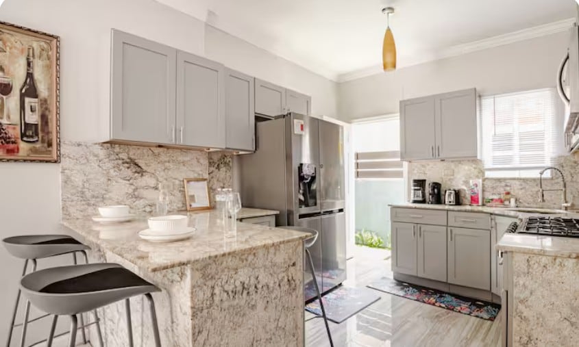 Escape to this stylish Caribbean retreat, perfect for up to 5 guests or a solo traveler. Enjoy high-speed Wi-Fi, air conditioning, an in-unit washer/dryer, a full kitchen, and all the comforts of an upscale home. Located in a secure neighborhood, you're just a 2-10 minute drive from top eateries, shopping, and attractions like the Bob Marley Museum. A car is recommended for easy city access. Free parking included—experience comfort, convenience, and Caribbean charm for an unforgettable stay!