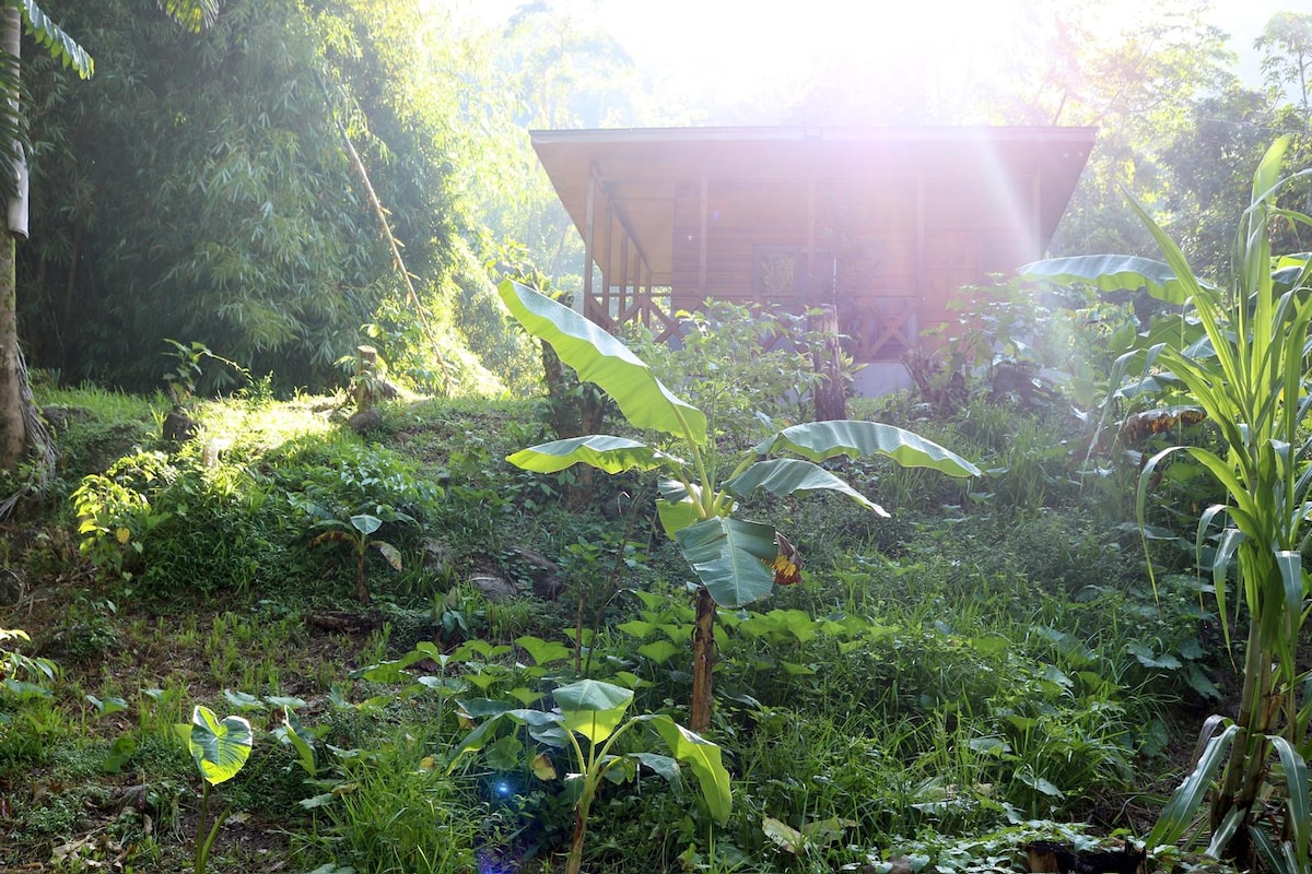 Our one-bedroom, off-grid, eco cabin with a private river and waterfall is nestled in 20 acres of virgin forest (mosquitoes included) in the safe community of Spring Hill, Portland. Our Eco Cabin offers the best of Jamaican country life experience and modern amenities. All powered by the sun. Relax with a hot shower, cool off with our AC, and stay connected with WIFI. Explore countless waterfalls, rivers, coffee farms, hiking trails, and bird watching. Hit that book now and escape from it all!