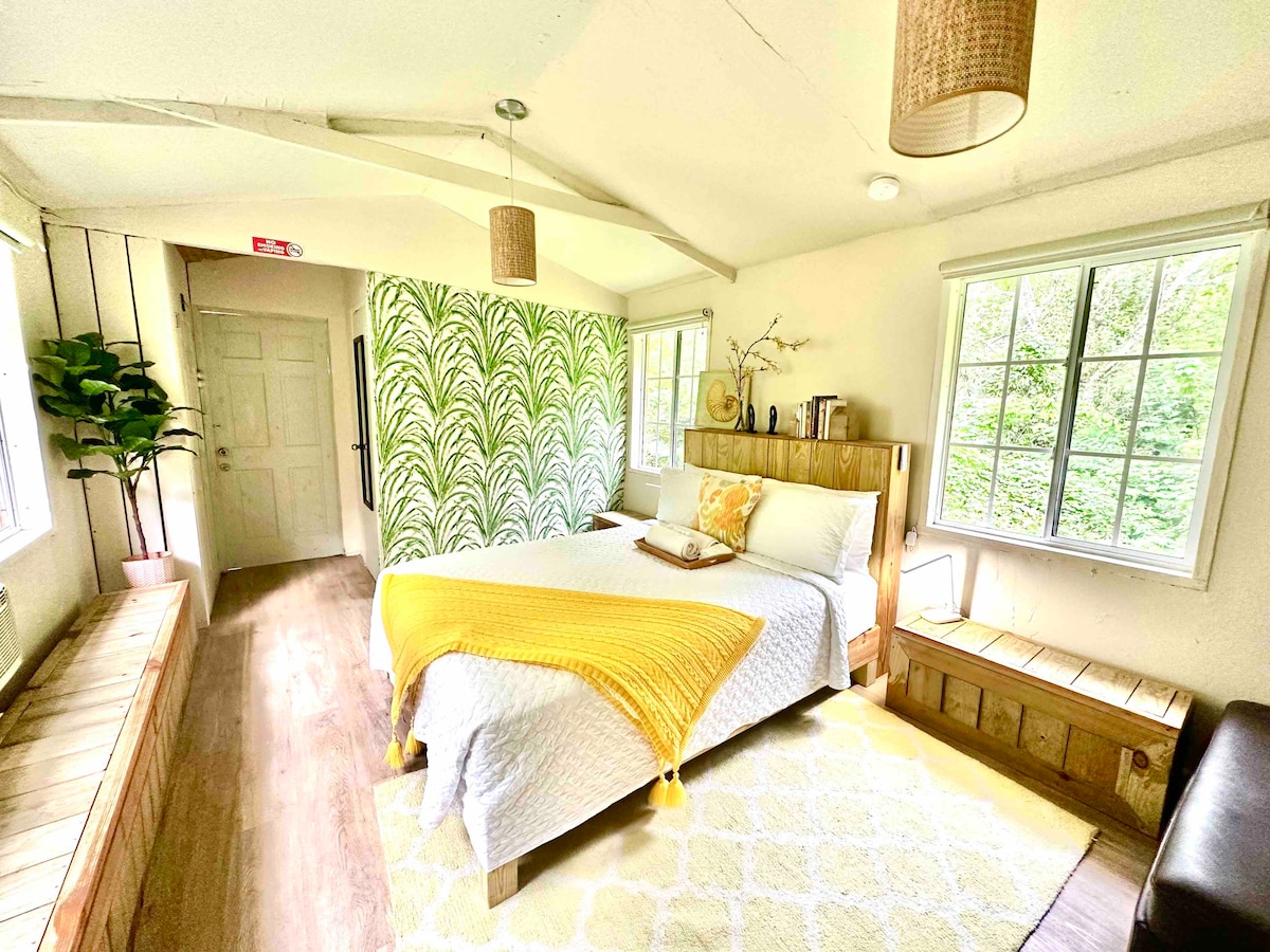 Our one-bedroom, off-grid, eco cabin with a private river and waterfall is nestled in 20 acres of virgin forest (mosquitoes included) in the safe community of Spring Hill, Portland. Our Eco Cabin offers the best of Jamaican country life experience and modern amenities. All powered by the sun. Relax with a hot shower, cool off with our AC, and stay connected with WIFI. Explore countless waterfalls, rivers, coffee farms, hiking trails, and bird watching. Hit that book now and escape from it all!