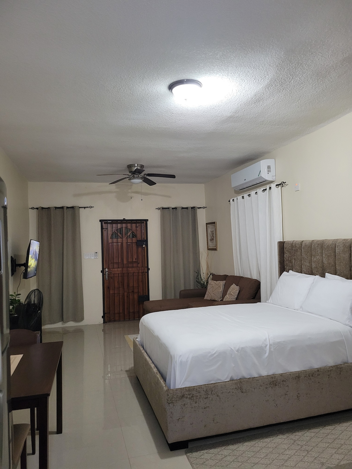 Outside the hustle and bustle of central Kingston metropolitan area lies this quaint spacious cozy studio apartment in a traditional residential community in Kingston. Lots of fruit trees to bring back memories of old Jamaica with views of the green hills of Red Hills. Just the right distance from all amenities such as, Devon house, The National stadium and halfway tree.