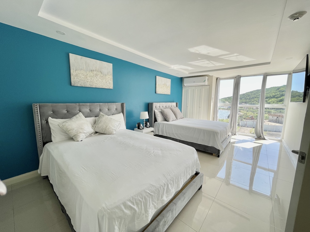 Bask in luxury with panoramic views of the Caribbean Sea. This resort style space is located just on the outskirts of Kingston known as the Meca of the Caribbean. Relax in our spacious bedroom with 2 plush queen size beds with ensuite bathroom. Enjoy our signature fireplace with our fully equipped kitchen and dining space. Relax by the pool or just take a few steps to the ocean. With easy access to restaurants, groceries, recreational spaces and entertainment you are in for a perfect stay!