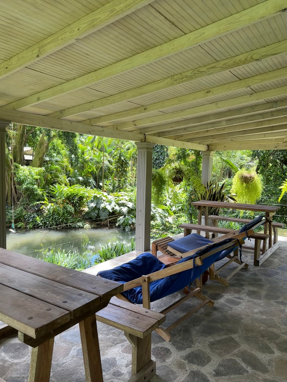 Take it easy at this unique getaway and escape to a secluded nature cottage in Vermont Valley, set in cool mountains above Sandals Resorts. Surrounded by lush flora, it overlooks a private koi-filled dam. Perfect for couples, solo travelers, or anyone seeking peace. Enjoy a fully equipped kitchen, indoor dining, picnic table outside, TV, and a spacious bathroom. Swim in nearby Table Rock River or walk to a local Asian restaurant and the famous Bush Bar. A cozy, refreshing retreat in nature.