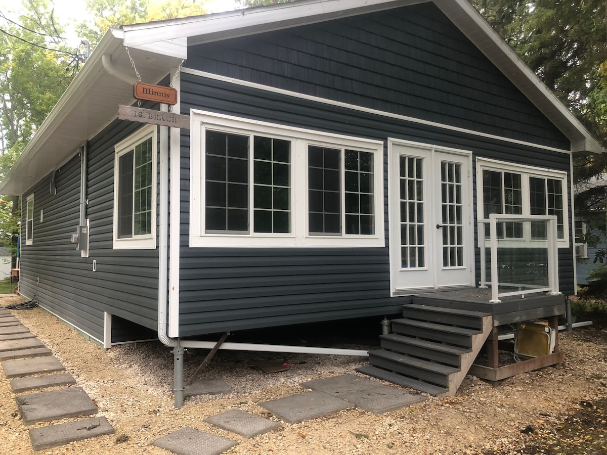 YEAROUND HOTTUB!! Driveway has been widened for all your ice fishing rigs. Freshly remodeled year round getaway with 5 bedrooms & 2 baths. Close to beach. Large yard on quiet street. Sleeps 8 comfortably. Linens and towels provided. Pack your food and move in! Lots of parking onsite for all your ice fishing equipment! Wood burning fireplace for the cold winter nights. Just a 40 minute drive to the perimeter. July & August are 4 night minimum. Long weekends 3 night minimum.