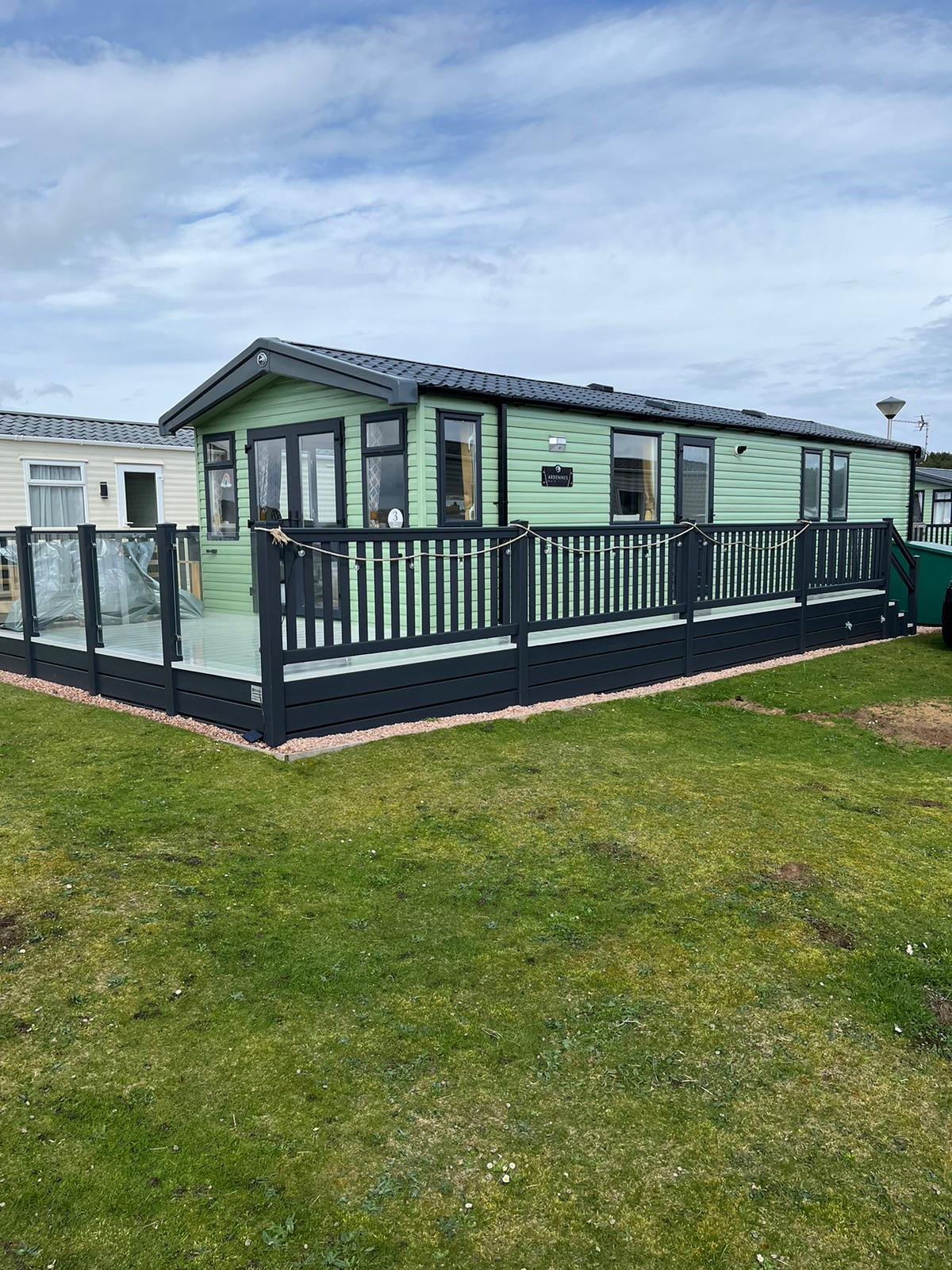 Beautiful fully-equipped 6 berth mobile home in a stunning location close to the East Sands in historic St. Andrews. Free WiFi.Master bedroom with en-suite and fitted wardrobes. Comfortable twin room single beds can be converted to a king size bed. Lovely far-reaching views of the beach, sea and St. Andrews from the lounge windows. Extra fold out double bed in the lounge. Relaxing seating, TV, dining area, kitchen and spacious decking with wonderful views. Short stroll to the beach and town