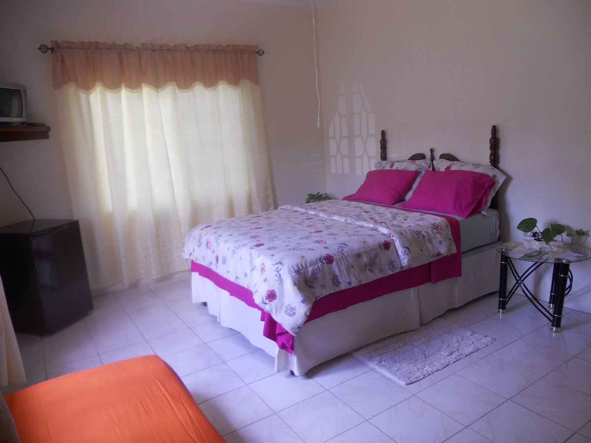 Stay in this comfortable guesthouse and live like a true local in Ocho Rios. We're within walking distance to restaurants, shops, and beaches. Our rental comes with 2 bedrooms, and a private bathroom that you're free to use any time. AC, Wi-Fi, a TV -- we've got everything you need.
