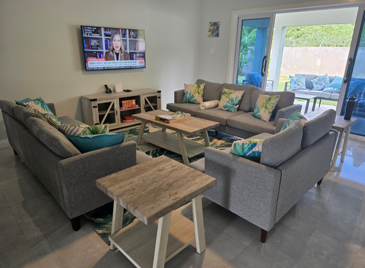 Bamboo Breeze is a cozy , comfortably decorated 5 Bedroom Villa , located in Richmond , St Ann Jamaica. The Villa features its own private Pool and expansive Pool deck with sunken Bar and BBQ for added relaxation , and access to Richmond's own private beach . Guests access includes a Gym , Tennis Courts , Pool and Table Tennis , Putting Green , Picnic areas, Walking Trail ,Kids Park and Playground. A fully stocked Supermarket/Drugstore/ Deli is nearby.* delivery service available .