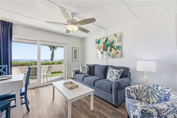Bright, airy and beachy, this condo at Ocean Gallery pairs resort-style amenities with an exceptionally clean, stylish and comfortable condo. Perfect for a couple or one family, it sleeps up to 4 in beds (primary bed sleeps 2; pullout sofa in living area sleeps 2 additional guests - perfect for kids). You’ll be a few steps from 1 of the 2 pools, and a 5 minute leisurely stroll through the complex will take you to the beach!