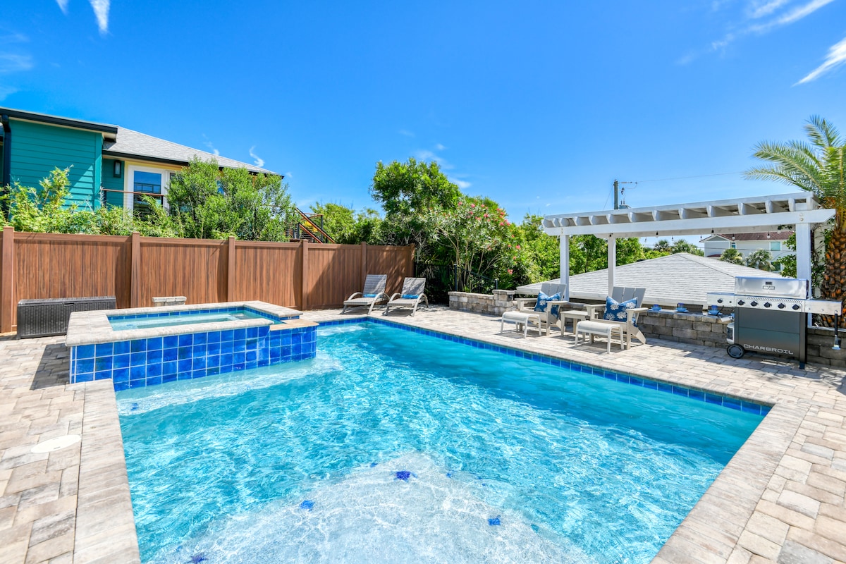 Experience the ultimate beachside getaway at our fully renovated Airbnb, just steps away from the sun-kissed sands. This luxurious retreat offers modern comfort with a private pool and inviting hot tub, allowing you to unwind in style. The recently upgraded interior boasts premium amenities, ensuring a relaxing stay. Outside, lush turf landscaping surrounds the pool, creating an oasis of comfort. Whether you're lounging by the pool, or enjoying the beach a stone's throw away, Driftmark delivers.