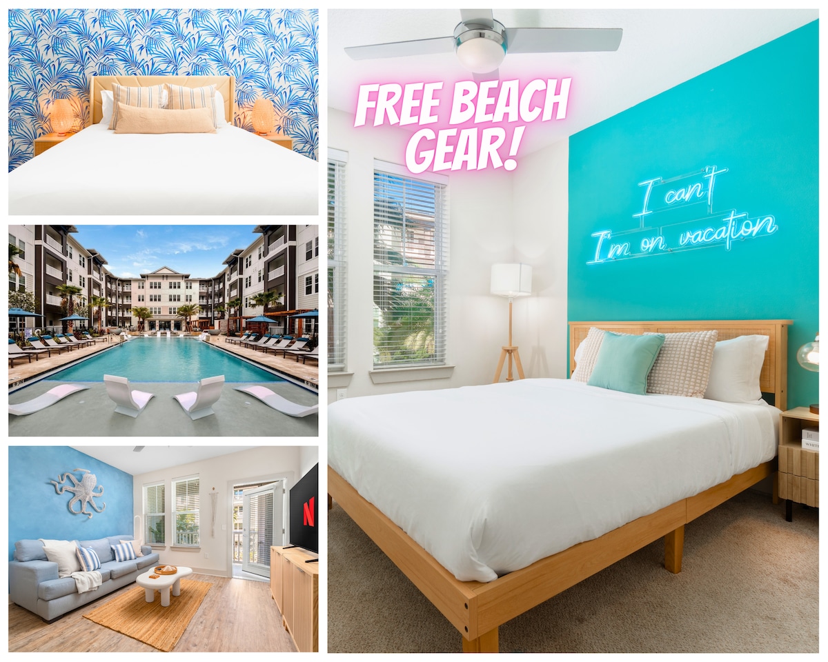 棕榈和潮汐| 5分钟DT |度假村泳池!健身房!码头!