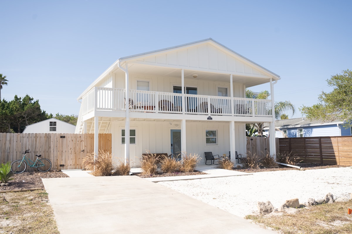 Add my home to your wishlist, click the <3 in top right corner! *Book 2 nights, get the 3rd night 30% off!* >Stunning Oceanfront Home with pano ocean views >Beautifully styled >4 Smart TVs w cable and streaming apps >Parking for 4 cars >Continuous balconies >Beach gear provided (towels, chairs, umbrella) >Walk to The Reef Restaurant >Short drive to downtown + Vilano Publix >Washer + Dryer >BBQ Grill >Drip Coffee Maker >3 days of supplies (TP, trash bags, etc.)