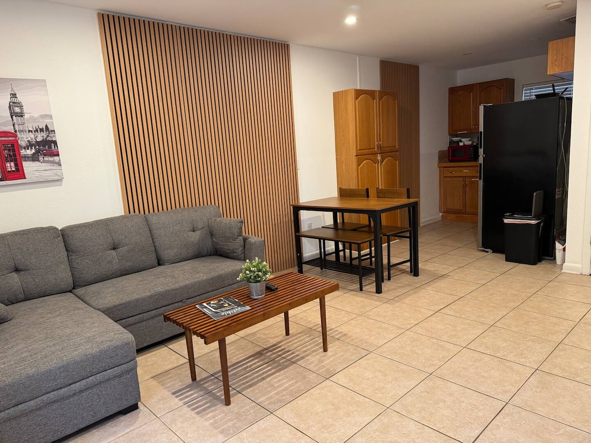 Our renovated studio is on a quiet cul-de-sac, one block from the beach! It is one side of a duplex and is perfectly located within walking distance to restaurants, family-friendly activities, nightlife, and public transport. It is across the street from the pier and the piers weekly farmers market. It is a short drive to historic downtown St Augustine. The neighborhood is quiet and safe. Our place is good for couples, solo adventurers and business travelers.