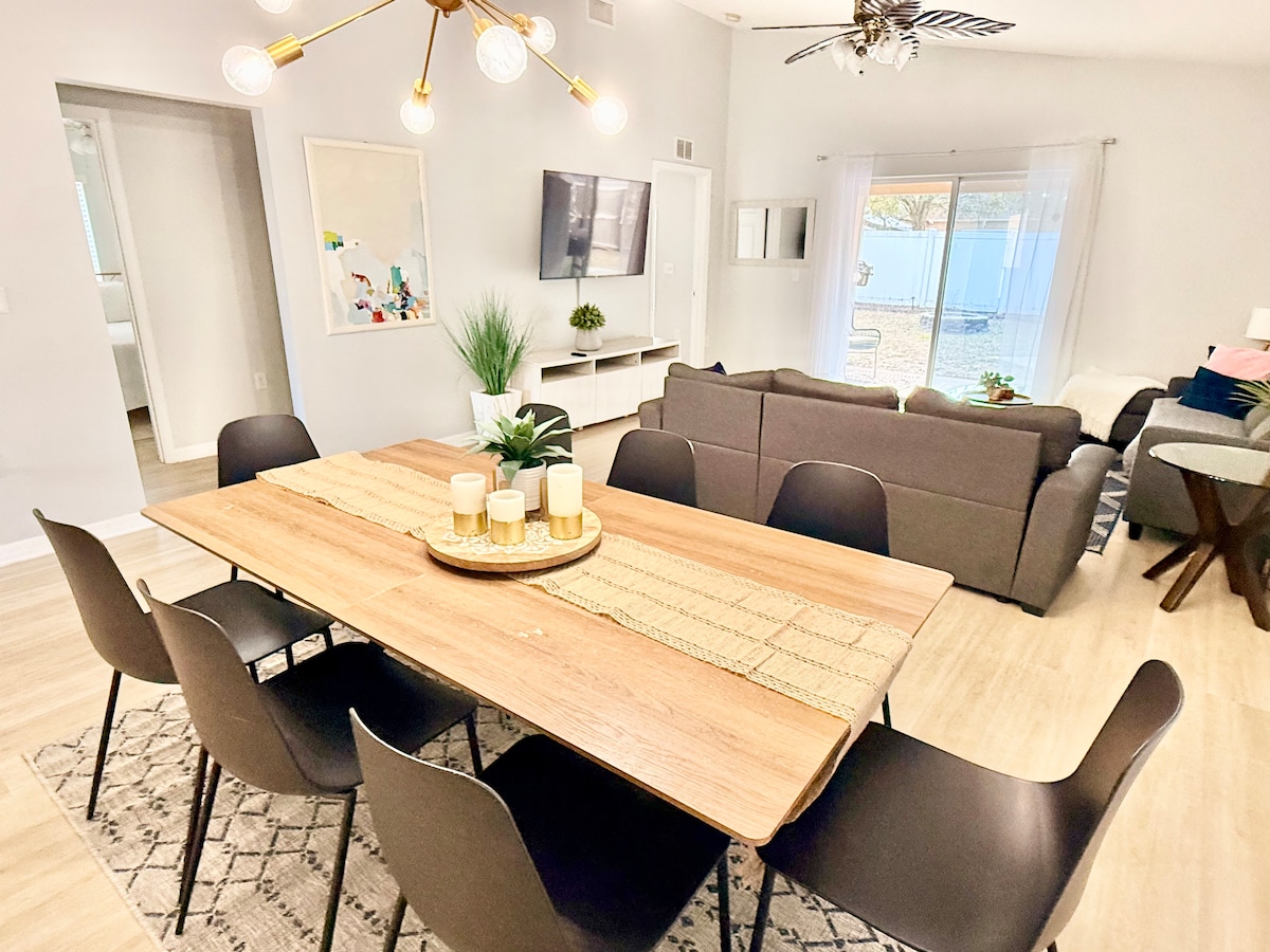 Casita Luxe Retreat Near Historic St. Augustine – Pet-Friendly Haven! Discover this luxurious 3-bedroom, 2-bath retreat! Designed with a modern luxe aesthetic, it features custom wood paneling, a fully equipped kitchen with a chic island, and a king-size plush mattress. Enjoy the large, fenced yard, fire pit, outdoor shower, and fun family games. Pet-friendly, with Wi-Fi, smart TVs, and parking included this home offers comfort and style in an up-and-coming neighborhood. Book now!