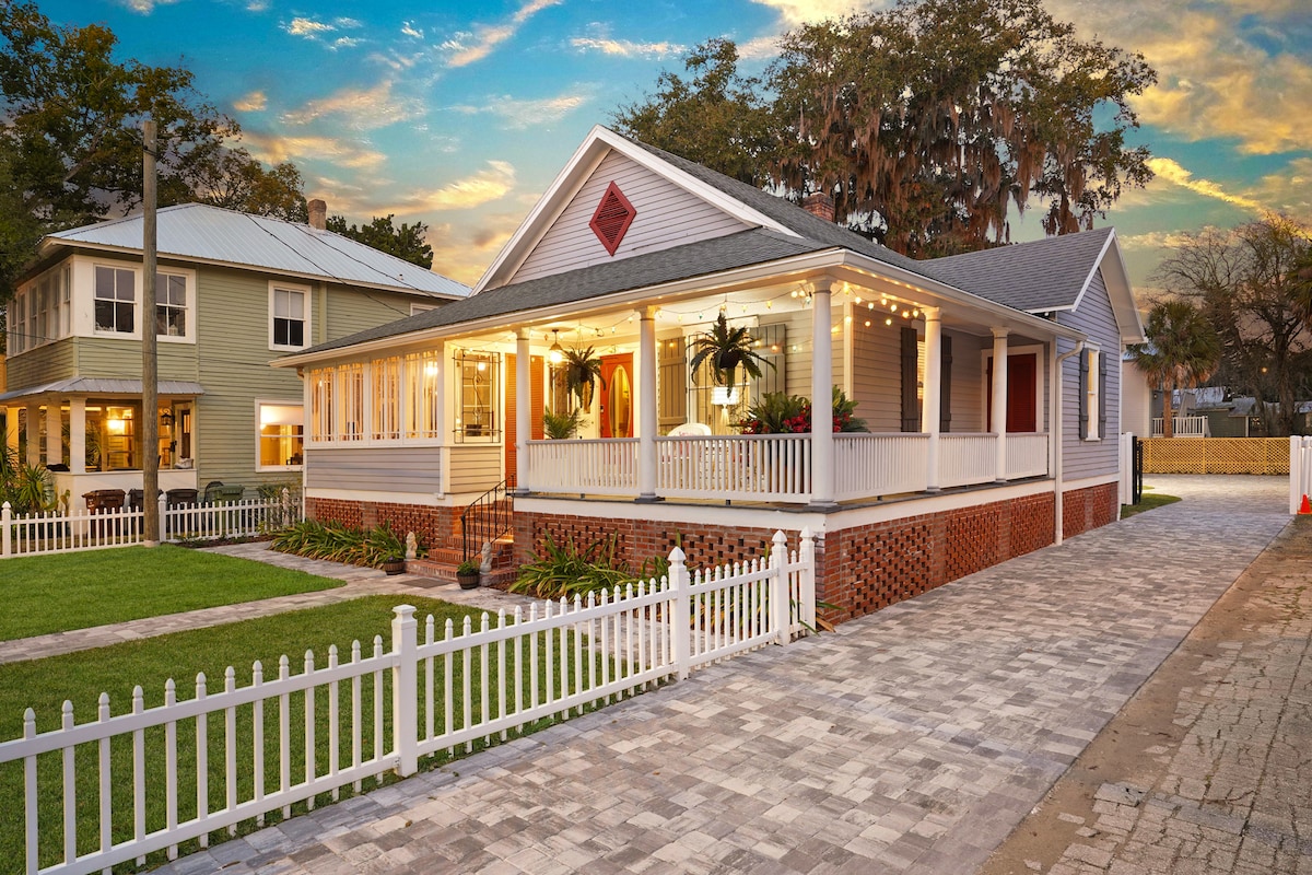 One of a kind 1930s historic home, newly renovated and transformed into a beautiful secluded getaway. new luxury finishes, while holding its traditional charm. No Events allowed. Rooftop deck, sunrise views of the Atlantic ocean, Downtown, and sunsets over the river. The new dock with covered roof hosts a national geographic like eco system. It’s short walk to the beach and 3 miles to downtown St George street. Follow along @carcabaroad for weekly content of the home.