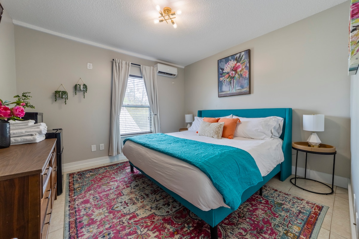 Step into The Blue Bird Apartment at Haley’s Court Boutique Motel, a corner unit that blends retro allure with modern comfort. Featuring a king bed, full kitchen, cozy sofa bed, and blackout curtains. Unwind on your back patio and enjoy the Vilano Vibe, this space is designed for relaxation. Just blocks from Vilano Beach and close to downtown St. Augustine, this 1950s-inspired getaway is the ideal retreat. Contactless check-in ensures a seamless experience. Book your stay today!