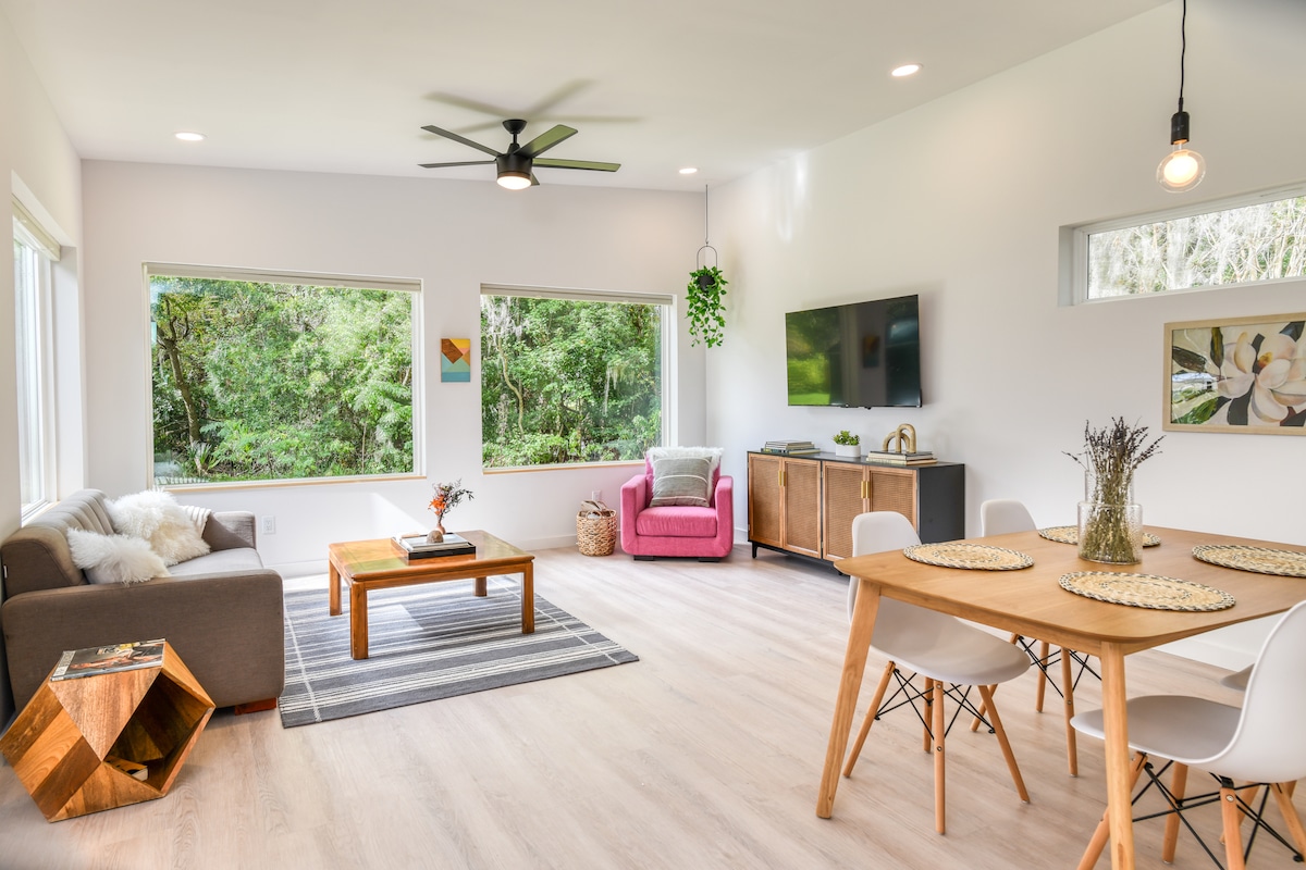 Casita Luxe Retreat Near Historic St. Augustine – Pet-Friendly Haven! Discover this luxurious 3-bedroom, 2-bath retreat! Designed with a modern luxe aesthetic, it features custom wood paneling, a fully equipped kitchen with a chic island, and a king-size plush mattress. Enjoy the large, fenced yard, fire pit, outdoor shower, and fun family games. Pet-friendly, with Wi-Fi, smart TVs, and parking included this home offers comfort and style in an up-and-coming neighborhood. Book now!