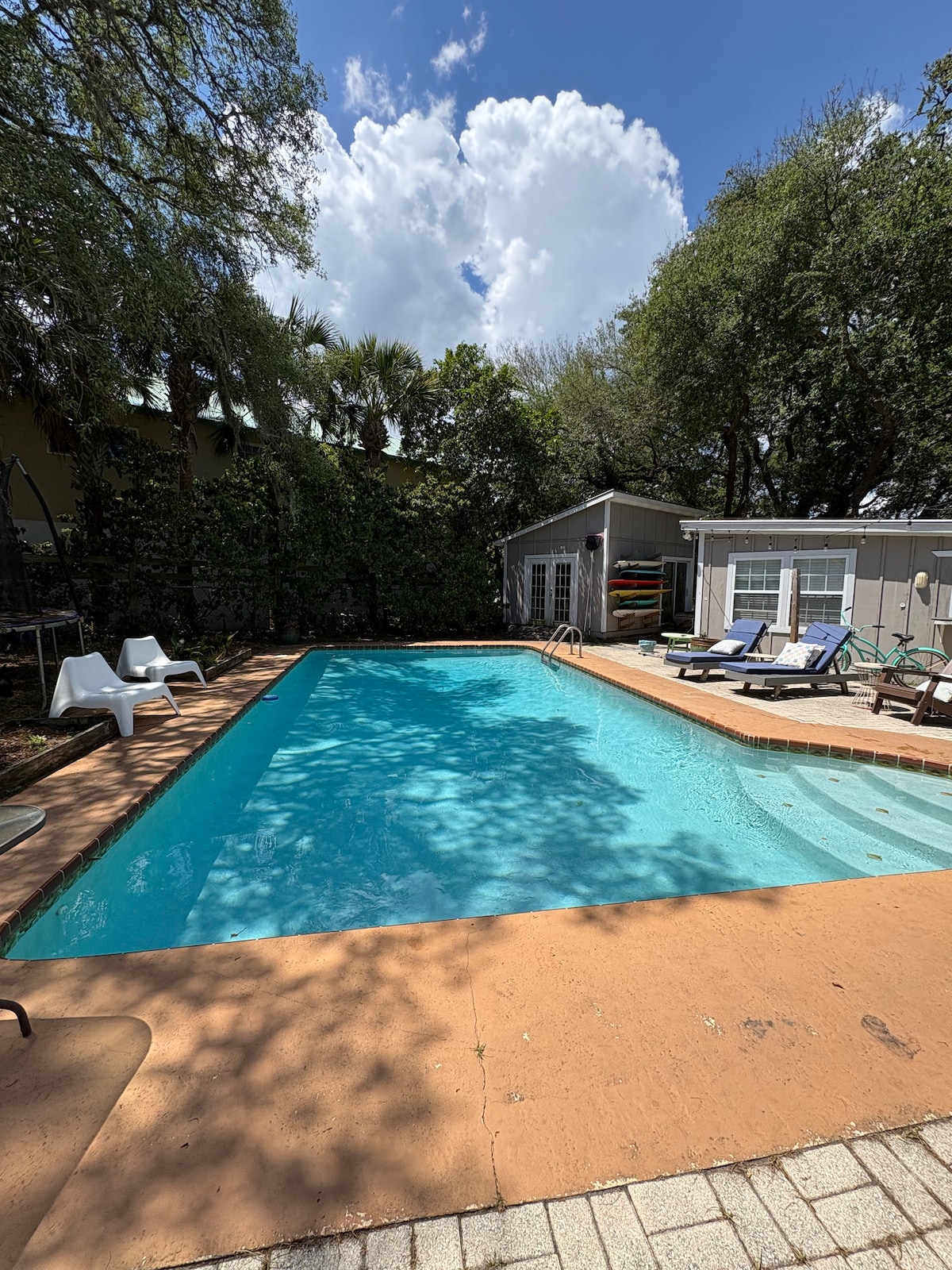 🏝️ Luxurious Private Heated Pool Home In Historic Downtown and Family Friendly! - Private Heated Pool & large backyard with tons of gorgeous palms - Outdoor cabana with grill, fans, pool table, kid toys, bocce, corn hole, recessed lights and seating - Walking distance to the Castillo de San Marcos Fort, Fountain of Youth, Uptown shops, The Bayfront and St. George Street - Less than 10 mins to Vilano Beach 🌊 - Sleeps 6/ 2 King beds, 2 XL twin beds (daybed trundle) - Pet Friendly - Event Venue