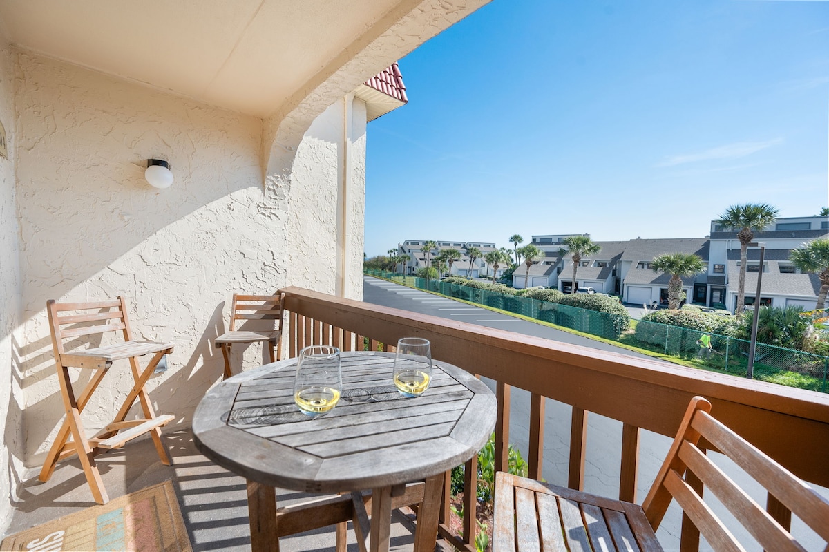 Welcome to the Sea & Salt Retreat of St. Augustine Beach! Fit 4 people in this spacious 2BR/2.5BA condo that is a 2-min walk to our beautiful white sand beach and a 1-min walk to the pool with cabana and chaise lounges. Effortlessly enjoy relaxation at the beach, lounge all day in the sun at the sparkling clean pool, or drive 12-mins to the Historic Downtown St. Augustine. Phenomenal amenities: Two sparkling clean pools, clubhouse, tennis courts, pickleball, racquetball, and basketball!!