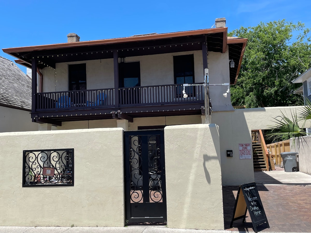 Beautifully renovated 2BR apartment boasts a prime downtown in the historic district of St. Augustine!!! Easily walk to plenty of restaurants, shops, and local attractions. After fun- field day, you can relax on one of the two balconies overlooking charming Charlotte Street or kick back in an open living area furnished with a plush sofa and 45" TV. Whip up tasty meals in the well-equipped kitchen, outfitted with stainless steel appliances. The apartment sleeps up to four guests.