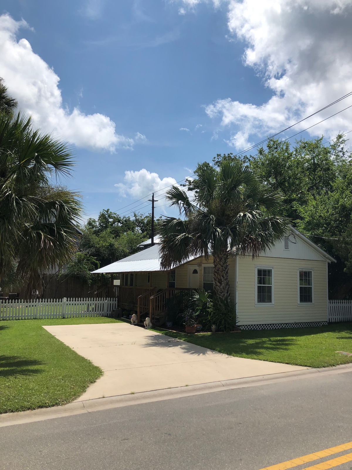 Come stay in this completely renovated, beautiful second floor, pet-friendly one bedroom apartment with a large fully-equipped eat-in kitchen. A spacious balcony with rocking chairs. Shared use of the fabulous back yard with picnic tables, BBQ grills, and bicycles! One parking space guaranteed. Best part: The location! About a five-minute walk to historic downtown and Flagler. Super comfy queen size 4-post bed. Pet fee is $40 per dog per stay (max of 2 dogs).