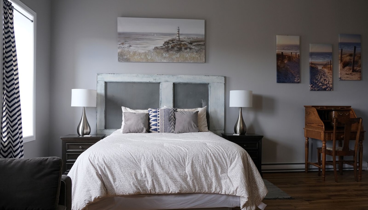 Located on Historical West st in downtown Port Colborne. Our largest studio apartment with 2 queen bed and a king pull out sofa. Kitchenette with private bathroom. Smart tv with Wifi. Close to all local amenities including beach, marina, museum and plenty of shops and restaurants. Leave your car at home and enjoy the East coast feel of Port. No canal view fromroom