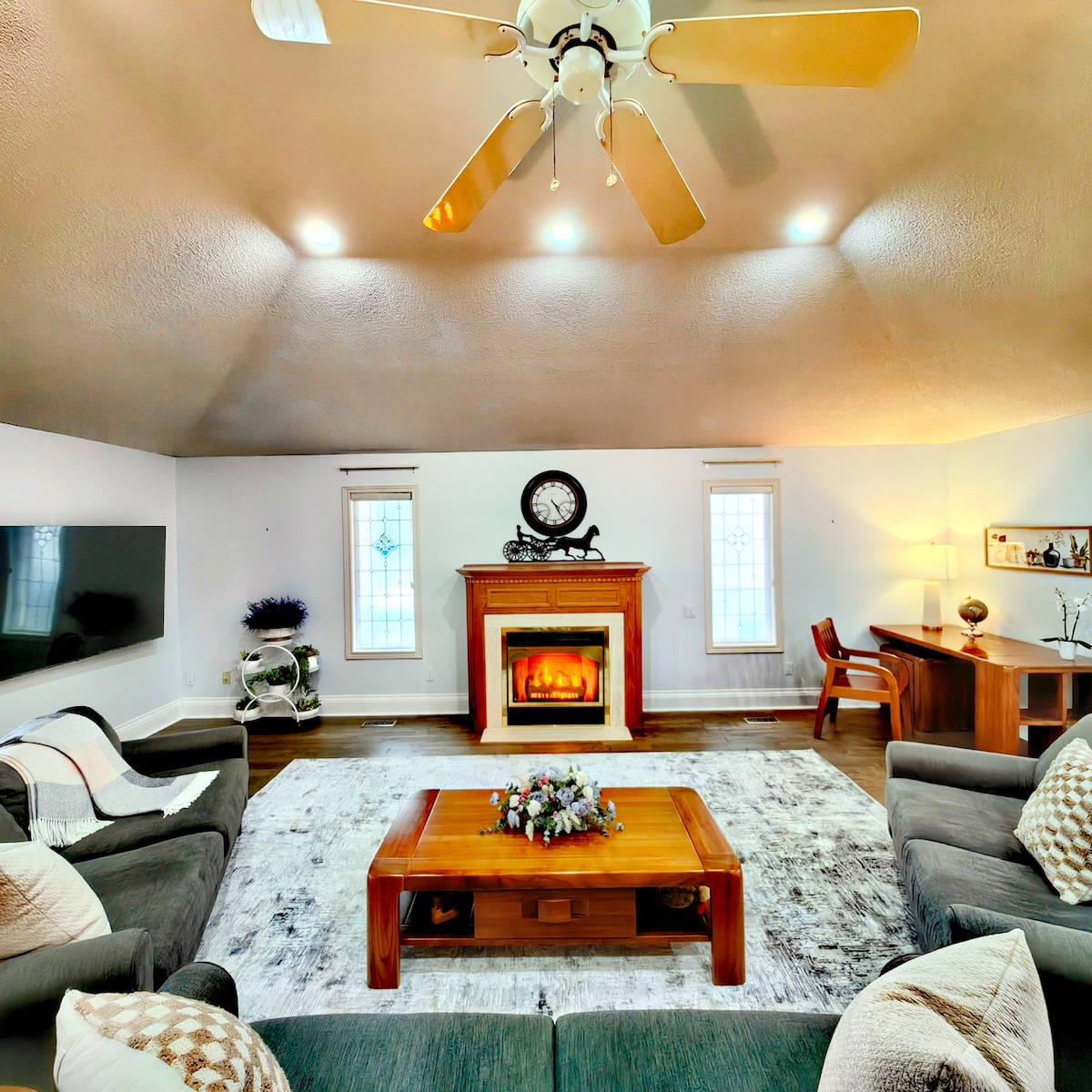 Welcome to our peaceful, serene, and quiet 1.7-acre retreat surrounded by trees in beautiful Niagara-on-the-Lake Our charming, high-ceilinged bungalow offers a unique experience with friendly farm chickens and geese on-site, a garden boasting over 100 roses and plants, a sauna, and a fire pit. Unwind in the tranquil surroundings, create lasting memories, and relish the perfect blend of comfort and natural beauty Close to wineries and attractions Book now for an unforgettable family getaway!