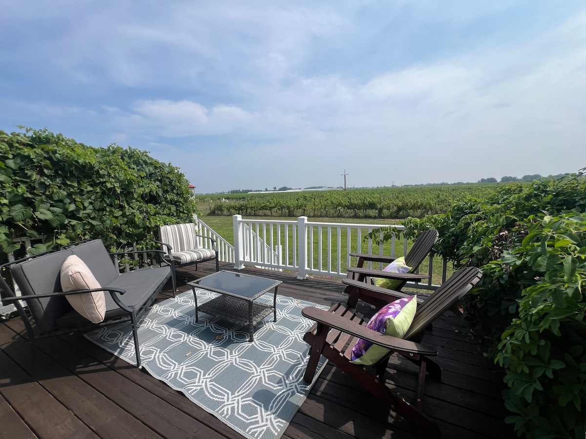 Welcome to our working farm and vineyard which is nestled in the heart of Niagara's wine country and borders the beautiful Niagara Escarpment. We offer a comfortable, bright guest suite studio attached to our farmhouse with amazing sunset views. Enjoy private access to hike the Bruce Trail, surrounding wineries within 5 min drive/bicycle and complimentary farm fresh eggs! Stroll through the vineyard, enjoy the farm animals and connect with nature!