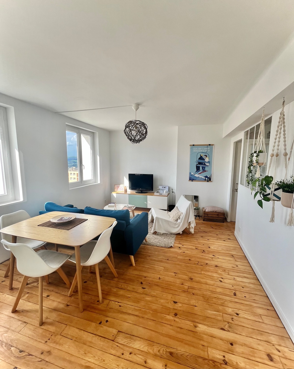 Découvrir notre appartement dans le centre-ville de saint-étienne, offrant une terrasse de 10m2 au calme ! Traversant, lumineux est entièrement équipée il est idéalement situé au 1er étage sans l'ascenseur d'un petit immeuble. A 5 minutes à pied du tram, et 10 minutes à pied de la gare de châteaucreux. Tout le nécessaire sera à votre disposition pour que vous pupassier un agréable séjour.