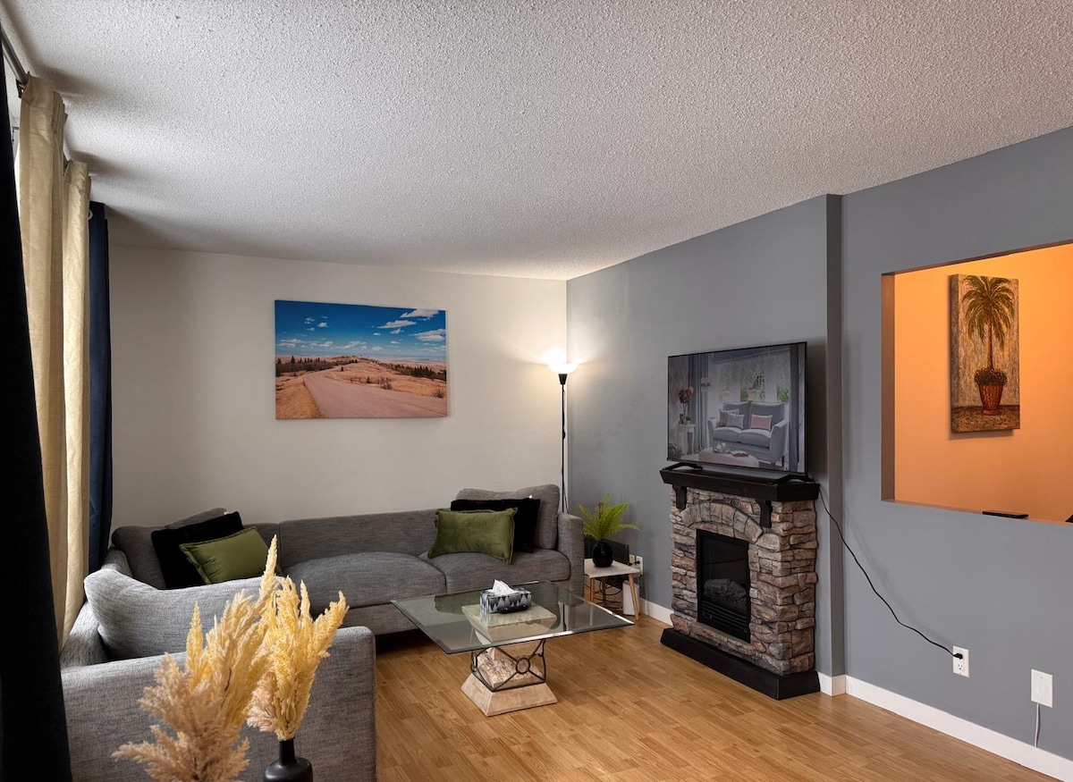 New Fully Furnished Basement suite This suites offer 📌 2 bedrooms (1 King Size and 1 Queen Size) 📌 1 Full washroom 📌 spacious Living Area 📌 Large Kitchen 📌 Dining area 📌 Led Tv 4K UHD 65 Inches with Netflix 📌 Separate Entrance 📌 Lit path 📌 Free 24 Hrs Parking 📌 Free WiFi Welcome to our New Suite nestled in Very peaceful neighbourhood in Blumberg Trail Just Stones throw away from Trans Canada Hyw 1. Whether you're here for a relaxing getaway our location ensures Privacy nd convenience.