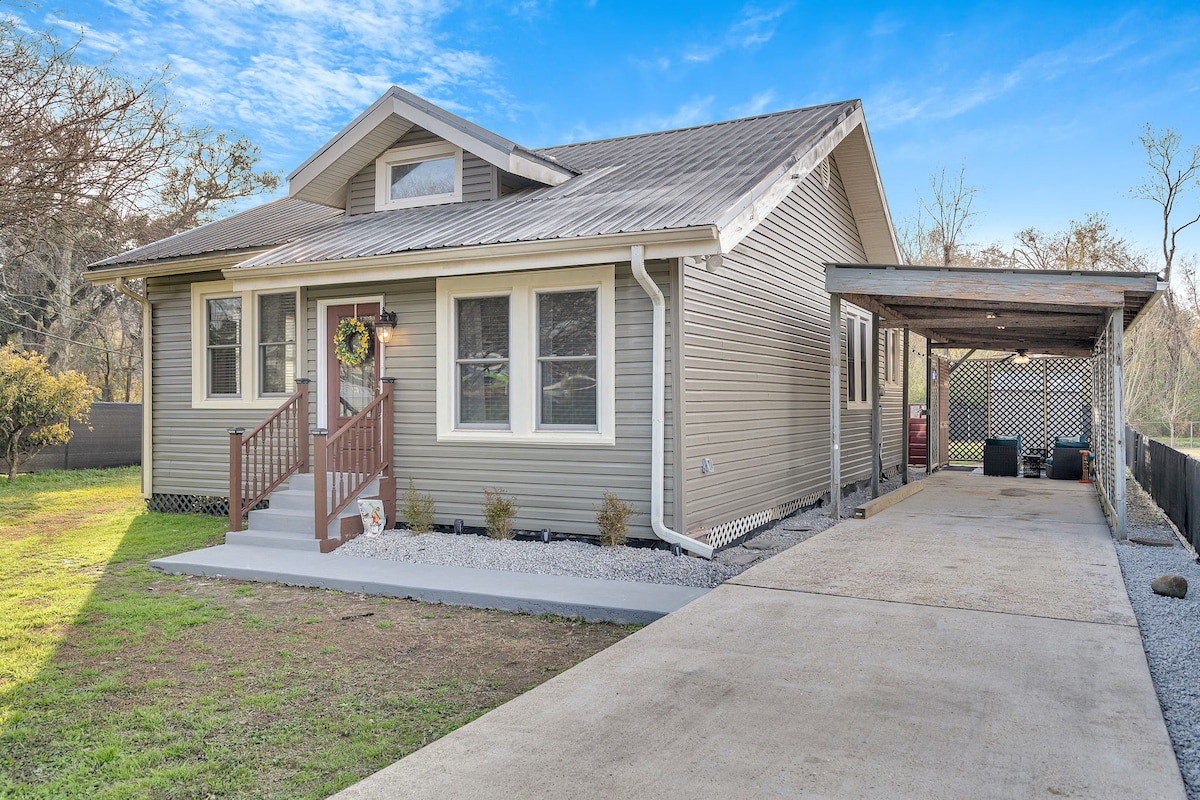 Restored Cottage with all the amenities nestled in a quiet, safe neighborhood with a nearby walking trail and park. Newly-renovated 3 bedrooms with queen-sized beds, 2 bathrooms, quaint kitchen & dining room, modern appliances, washer/dryer, covered outside seating area and long driveway. It is located 13 minutes away from the Airport with easy access to the French Quarters and surrounding attractions. Come enjoy the natural beauty of the Bayou and the culinary genius of the Creole cuisine.