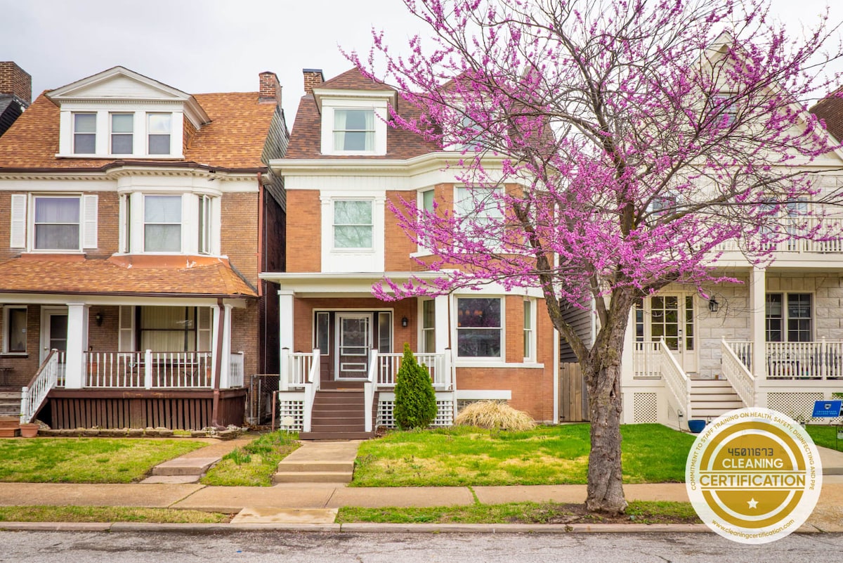 (Back as an Airbnb after a year long renter!) Entire house to yourselves in the heart of Tower Grove South! 3 bed 2.5 bath! House is stocked with everything that you’d need. Enjoy the best park in St. Louis 3 blocks away, in the safest neighborhood in the city! Full kitchen, big screen tv, big backyard with hammock and fire pit, covered garage for small compact cars (with an EV charger), tons of board games and more.