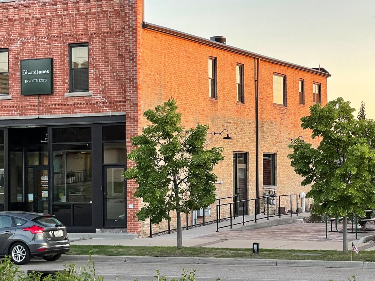 Amazing Location! Sleeps 4, Great Quality! From the linens to the kitchen to furniture! Great walkability to restaurants, beautiful river parks, groceries and shopping all within blocks. only 4 minutes from St cloud hospital. Whether your enjoying the 65" 4K smart tv, hooked up on wi-fi, cooking in our beautiful well stocked kitchen or just sleeping you will find comfort and quality. Outdoor patio with fire pit, table & charcoal grill. Free parking 10'x55' can accommodate truck and trailer.
