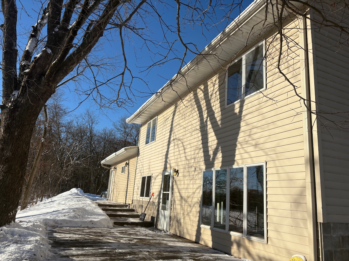 Spacious house located on the Scenic St. Croix River. Walking distance to Hudson, great walking paths to nearby supper club and bar and close to Stillwater. Big private beach and dock to swim and relax on with a lilypad for your use. Horseshoes, cornhole, and firepit in the backyard with another firepit right on the beach. Noon check in time for a longer stay! You can even bring your own boat as we have a private slip that fits up to a 34' boat. Only 30 minutes from US bank stadium!