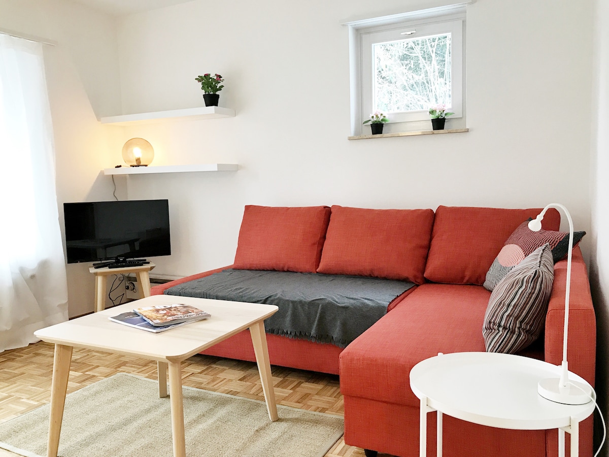 Wir vermieten eine sehr schöne, neu möblierte und gemütliche 30m2-Wohnung mit separatem Schlafzimmer. Im offenen Wohnzimmer mit Küche und Essplatz hat es ein grosses Bettsofa. Die Wohnung hat einen separaten Wohnungseingang und befindet sich im Erdgeschoss (keine Stufen), der gratis Parkplatz ist direkt neben der Wohnung. Die Wohnung liegt mitten im Dorf und ist einfach zu finden. Nur drei Minuten zur Bushaltestelle, 40 Minuten nach Zürich. Wir, die Gastgeberfamilie, wohnen im Obergeschoss.