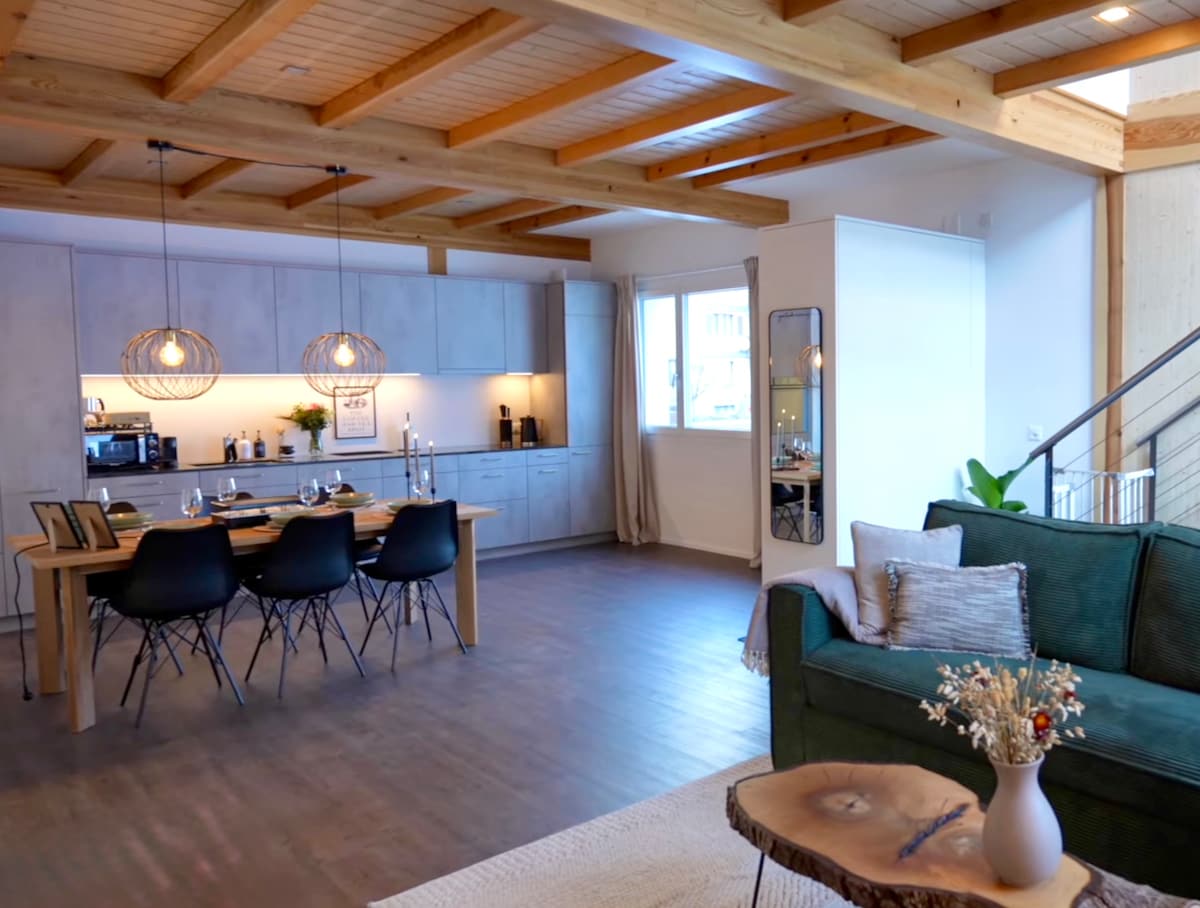 This two-storey gallery penthouse on 133m2, located in the Walensee resort, is characterized by its unique view of the mountains and directly over the lake. From this location you can walk to the Unterterzen-Flumserberg gondola in a few minutes, to the Unterterzen train station in 150m or to the lake. The location is ideal for sports activities in winter as well as in summer. The region is very attractive and still a little insider tip away from traffic and mass tourism.