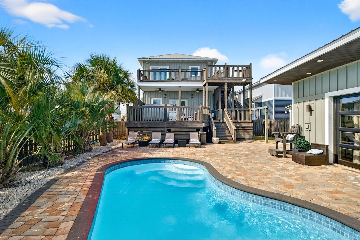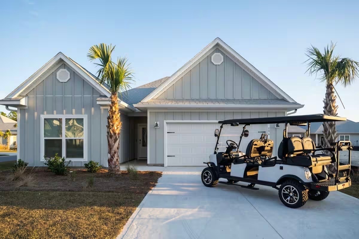 ⭐️Luxury 4-bedroom Beach Home ⭐️ Sleeps 12 in Windmark Beach ⭐️ Heated Pool Oct 1-Apr 30 ⭐️ 6 Seat Golf Cart ⭐️ Steps to Beach Access ⭐️Pet Friendly You’ll be steps to the luxurious community pool where you can relax overlooking the Gulf. You can walk to the beach in mins from the home to swim in the warm waters of the gulf or relax in the sun.Take a golf cart cruise to the nearby Village Center to grab a bite to eat.End your day relaxing in the screened-in porches or fire pit outdoor space.