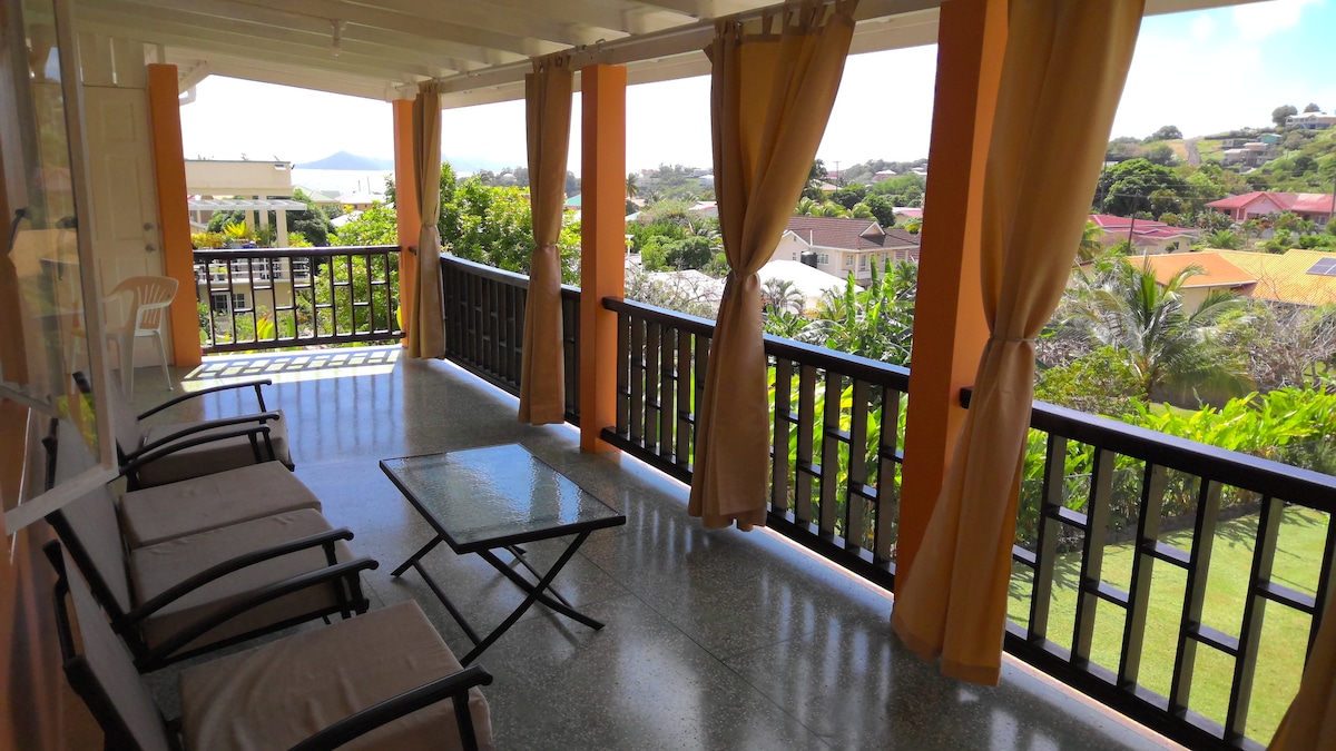 Premium accomodation at no additional $. FREE SHUTTLE SERVICE TO AND FROM AIRPORT WITH MINIMUM OF 7 DAY STAY AND NON DISCOUNTED RATE. Free washer and dryer. Want to hike a volano? No problem. Want to visit a rain forest? No problem. Want a chef to prepare a meal for you? No Problem we can help arrange for you Deck has best Views in St Vincent, breathtaking! THE BEACH IS A COUPLE MINUTE WALK NEW!! WE NOW OFFER A MINI SPA ONSITE. Book your mani or pedi. Close to dining, shopping, nightlife.