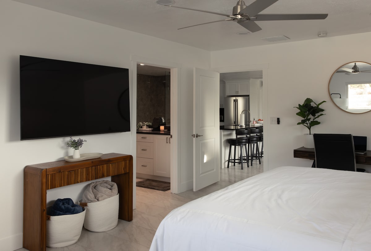 Our luxurious casita has a warm Tuscan feel. It is located in southern Utah's recreation heartland, St. George. It is a completely separate and private dwelling from the main home with its own entrance. The bed is a very comforable Queen size bed. Quiet Neighborhood. Easy access to hiking, mountain biking, 4-wheeling and Zion National Park. Private entrance. Private Bath. Mini-Fridge.