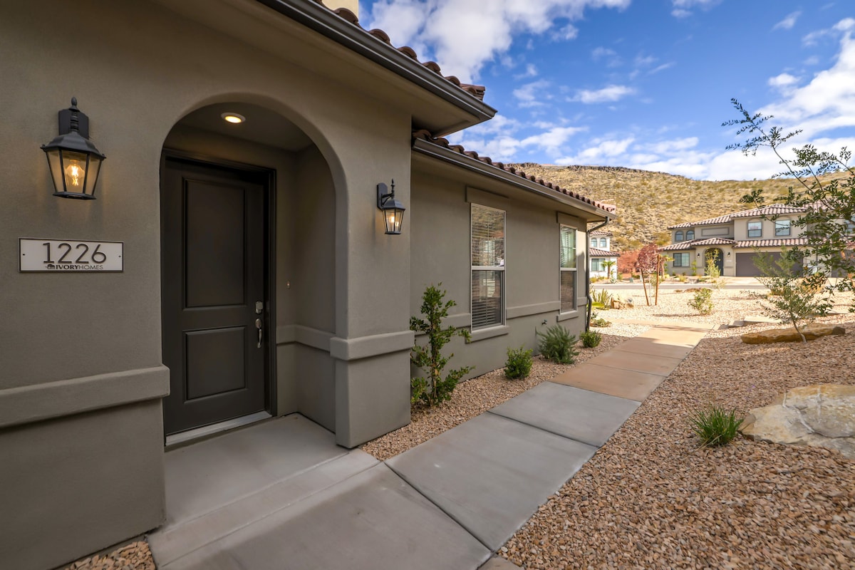 Brand New townhome is located 36 miles to Zion's National Park, and features a private outdoor hot tub, fire pit, and a heated pool! The quiet Vida Sol community is located only 2 minutes off of I-15 and 5 minutes to the St George outlet stores and Walmart/Costco. Mountain biking, walking trails and two parks nearby. ✓Private hot tub 🏊Heated Pool (Shared, heated year-round) 🛏️3BR/3BA 🛋️2 Living Rooms 👨🍳 Chef's kitchen 📶Fast/Free internet 📺Smart TV's ❄️AC 🔥Fire pit 🍖Grill 🛀Big bathtub