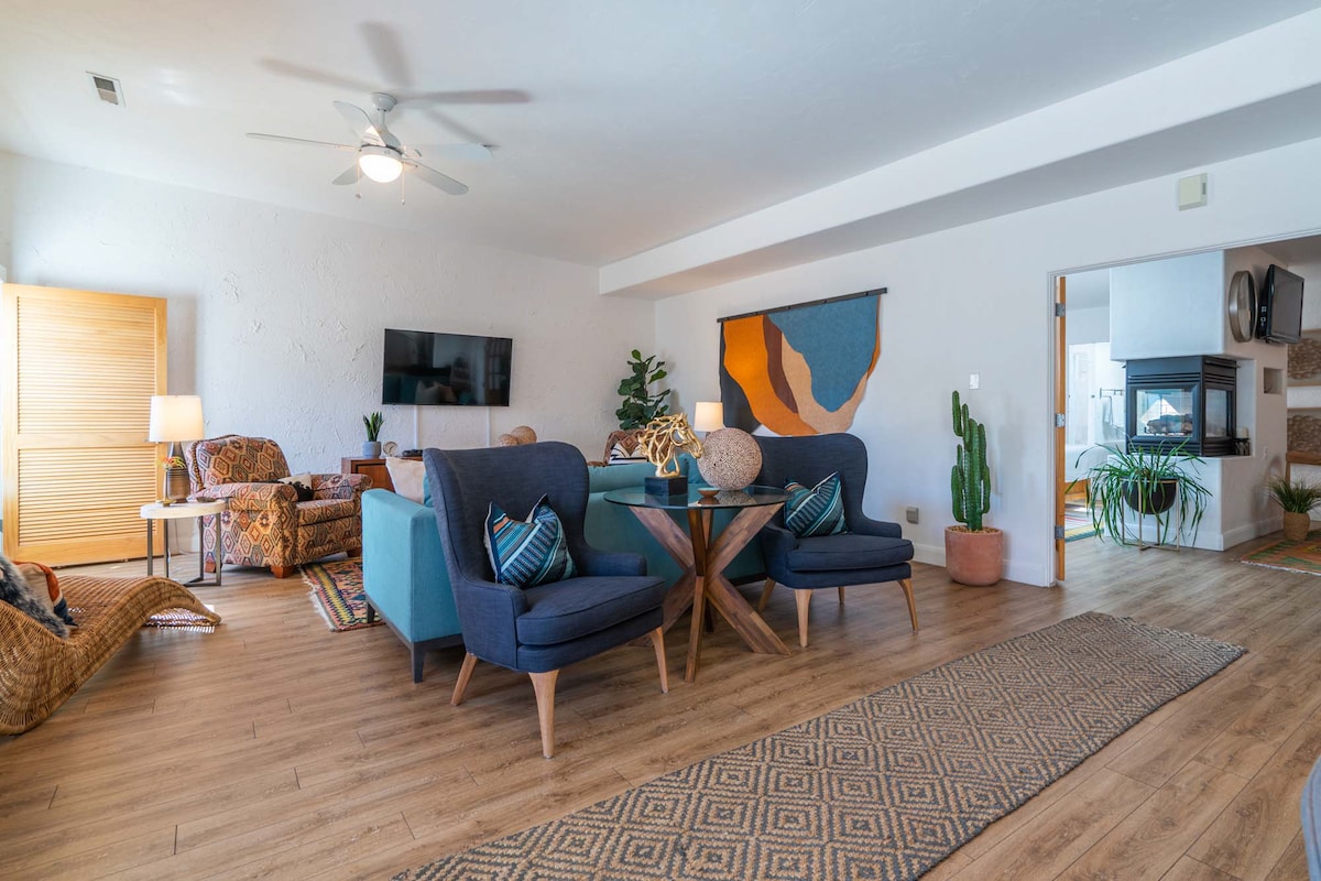 *Pool and jacuzzi temporary close-opens on January 16** This gorgeous Spanish Colonial destination is exactly what you need for complete relaxation. Featuring 1 King size bed and a sofa sleeper (sleeps 4), 1 bathroom with a washer and dryer, beautiful walk in shower, fireplace, living room, private patio with a full kitchen, BBQ grill on patio.