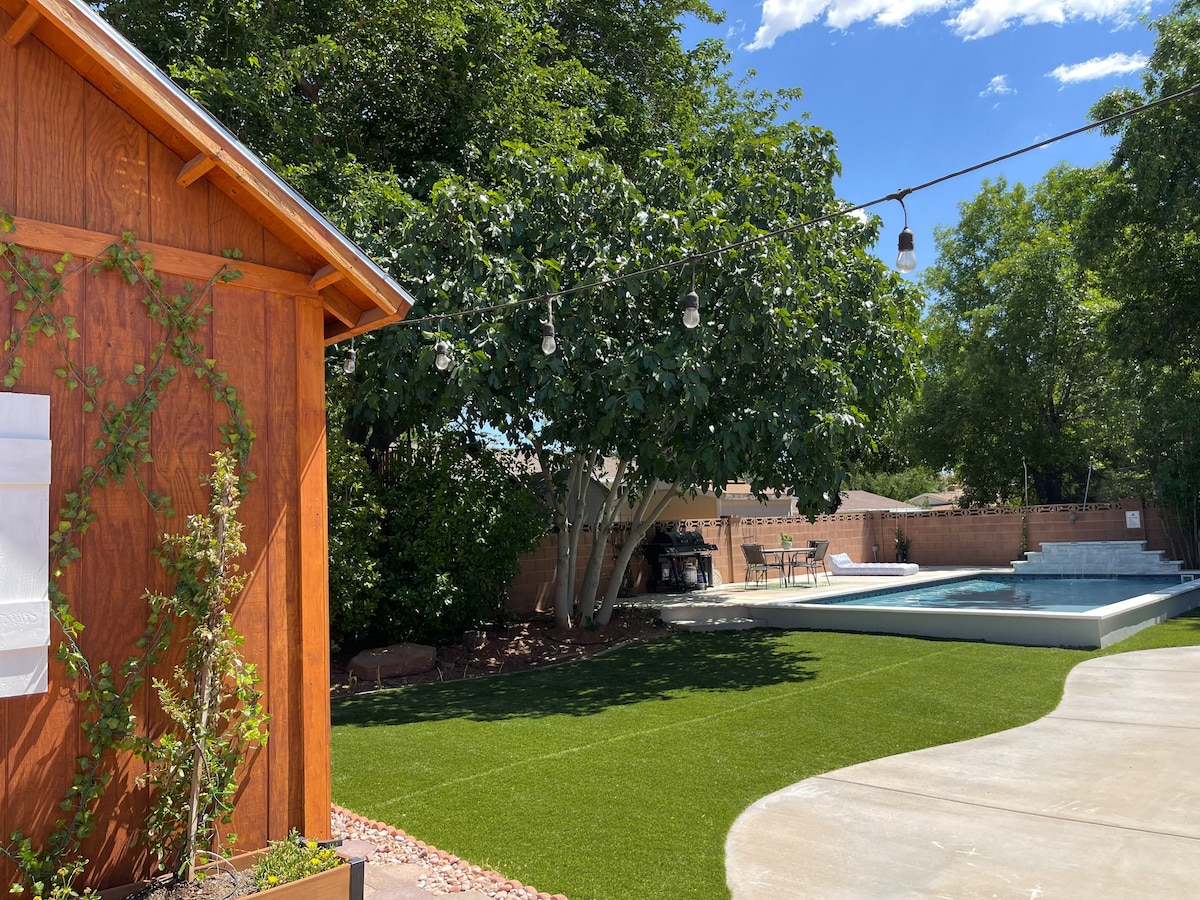 King Bed & Double Sofa Bed (+ travel crib upon request) Pool + Hot Tub Kitchen with microwave convection oven, induction top and full size fridge. All in one washer + dryer Projector + fireplace Incredible bike paths and world renowned hikes are at your doorstep. Zions National Park: 50 min Bryce Canyon: 2 hrs Snow Canyon State Park: 13 min Sand Hallow Lake: 30 min Downtown/ UTU: 10 min Experience tiny house living, while perfectly located to explore the region.