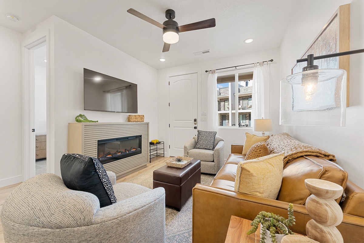 Don’t book a place out in the boonies! Next to Las Palmas. Book our modern corner main floor condo with no stairs and tons of windows! We are next to state parks, (Zion) Tuacahn Theatre, Walmart, Bear claw poppy trailhead for hiking/biking trails, 100mi UTV Riding and we are also next to The Grip Fitness - Ninja Warrior Obstacles and a Spa! Our condo is a ground unit so you have large patio that sits between palms! Walk out the back to a grass area! Fiber Wifi, tons of windows. Massive pool/tub