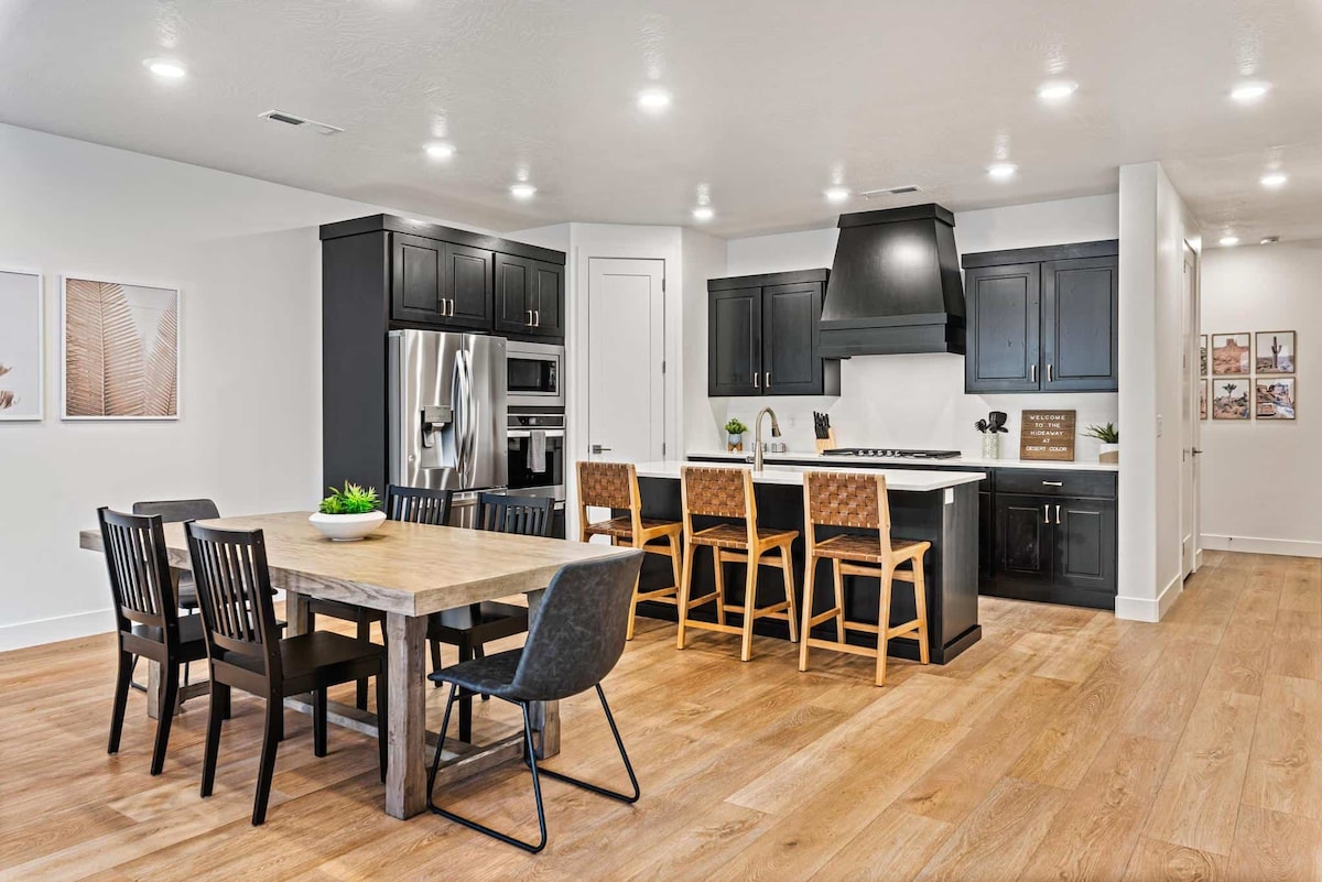 7 bedroom luxury townhome 30 minutes to Zion National Park! Pool heated all year! Private hot tub; pickle ball courts, spectacular views! Says 16, but sleeps 20+ Perfect for reunions. Right next to pool with slide, lazy river and clubhouse. 6 flat screen smart TVs, arcade games, Guardians of the Galaxy full size pinball machine. Ping Pong. 5 rooms have king beds. 2 w/ bunks sleeping 10 more. Wal Mart 5 mins away. Seats>20. Free NEMA 14-50 EV charging (bring your own cable)! Explore Greater Zion!