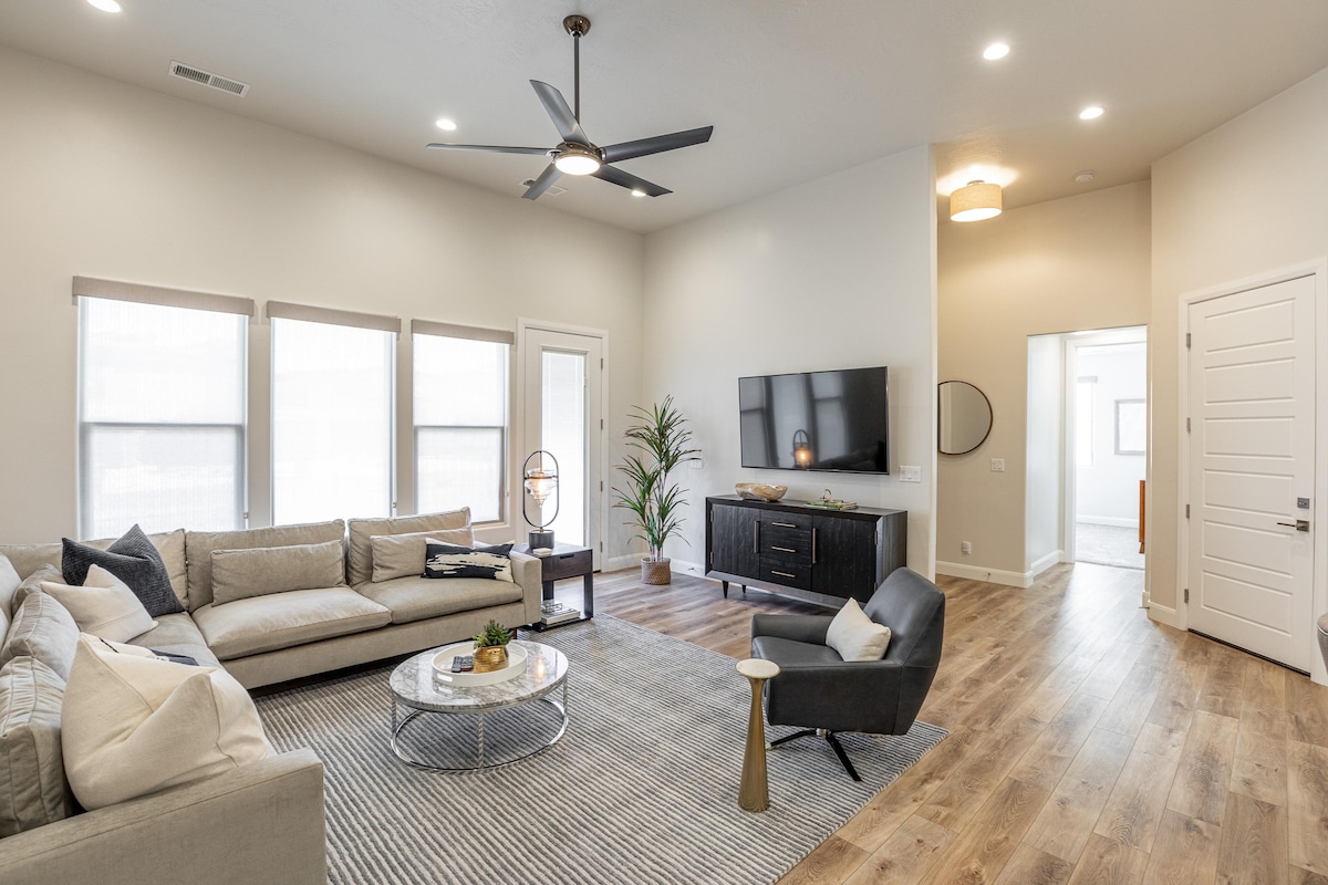 This stylish studio with High-Speed WiFi, Private Entrance, King Bed with Luxury Linens, Large Bathroom with Jetted Tub/Shower, Full Kitchen, Smart Roku TVs, and Fenced Patio with BBQ. Resort includes TWO Pools (Adult & Family), Hot Tub, Pickle Ball Courts, Fitness Center, Laundry Room, Ice Machine, and Spa. Everything NEW! Perfectly located but also very quiet. Best kept secret in St George with everything you would want for an upscale getaway! Book Today *NEW listing discount*