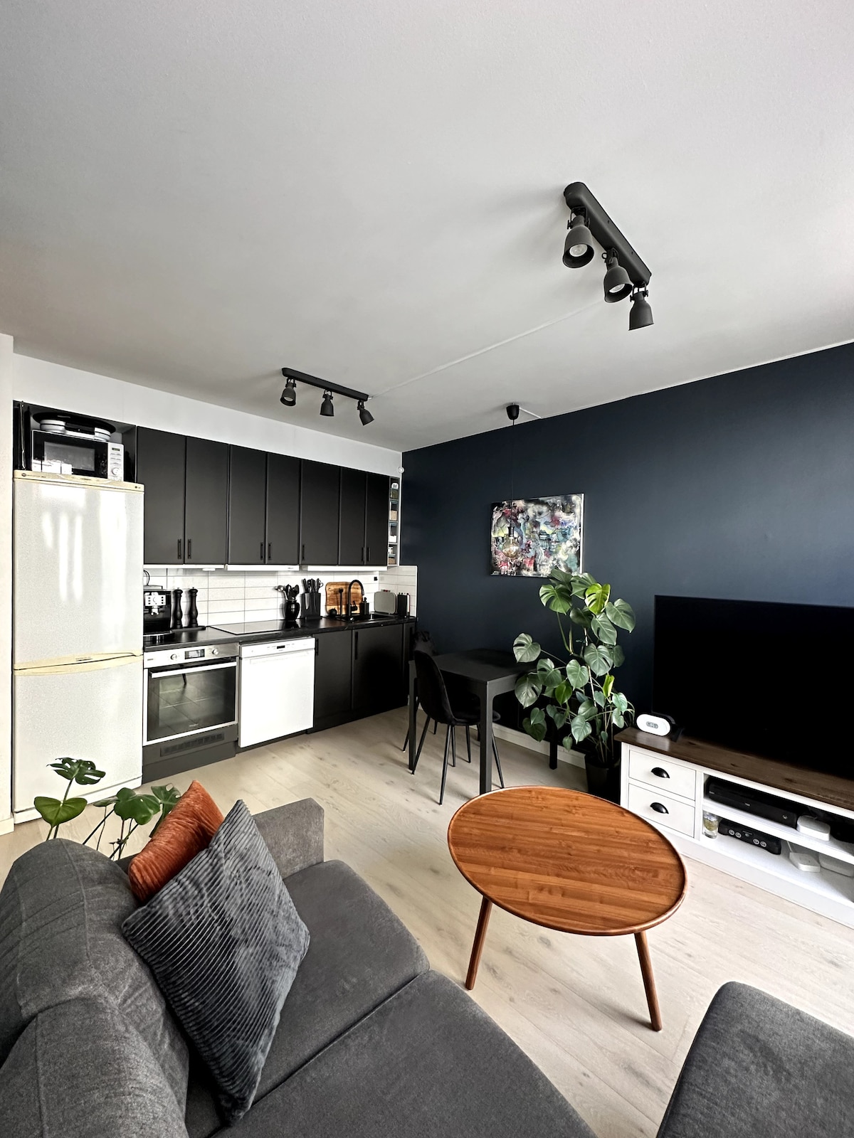 Leiligheten har et fullt utstyrt, moderne kjøkken med alt du trenger for et behagelig opphold – inkludert kaffemaskin, oppvaskmaskin, kjøleskap og fryser. På soverommet finner du en komfortabel dobbeltseng med hvitt bomullssengetøy for en god natts søvn. Badet er lyst og elegant, med marmorfliser og en herlig regnfallsdusj. I stuen kan du slappe av på sofaen foran TV-en eller koble deg på raskt internett. Her får du en lun og moderne base, perfekt for både korte og lengre opphold. 💫