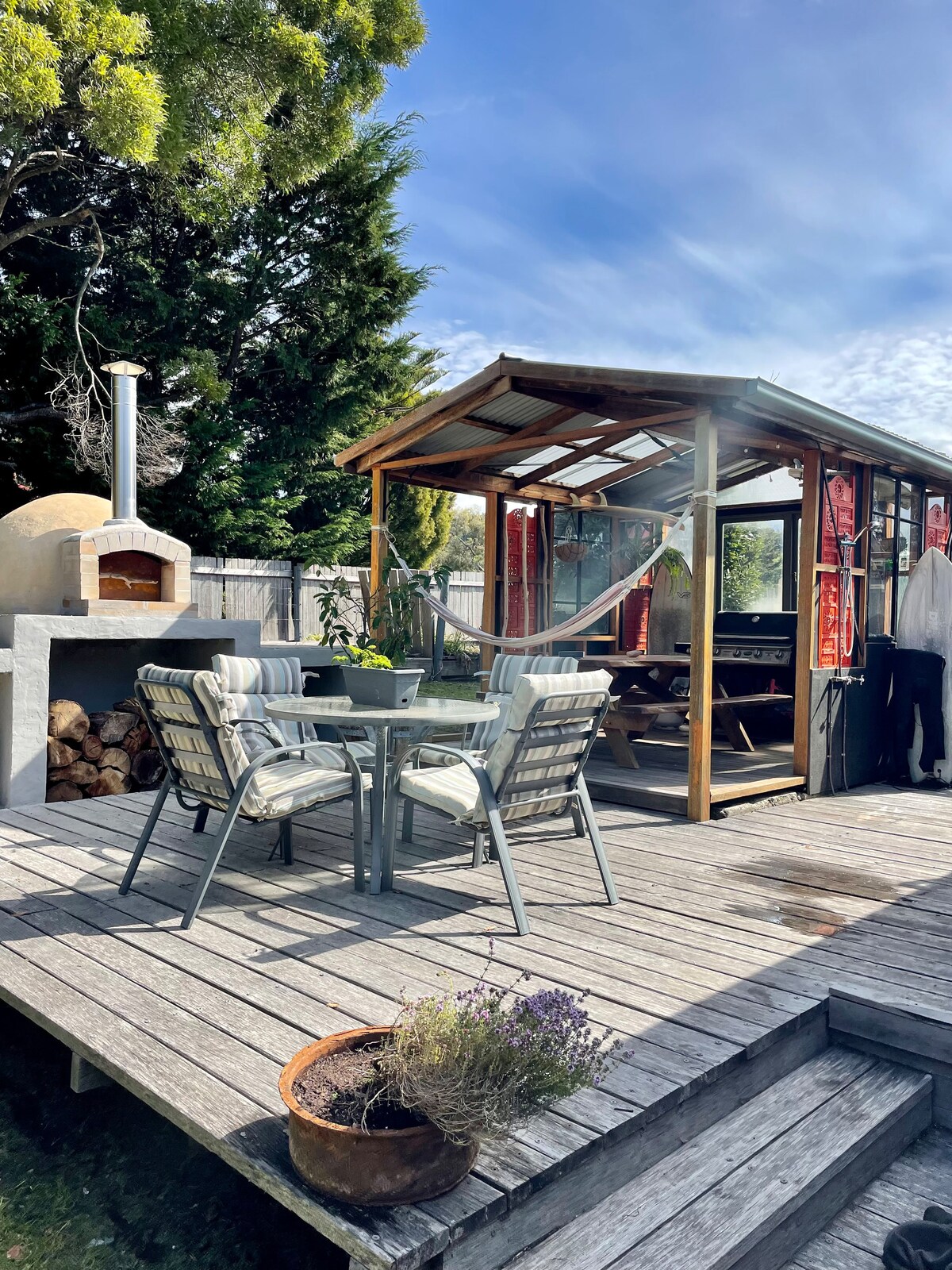 Bay View sits above the road looking across George’s Bay. The shack is a sun filled space with two living areas. The kitchen is modern and well equipped. The bathroom is newly renovated. Outside has private views to the bay. An outdoor cabana, pizza oven, firepit and bbq area make an ideal space to enjoy an evening meal. The town is a short 5 minute drive, or a lovely 30 minute walk along the bay. Surf beaches, dive spots, MTB tracks and National Parks are all within close proximity.