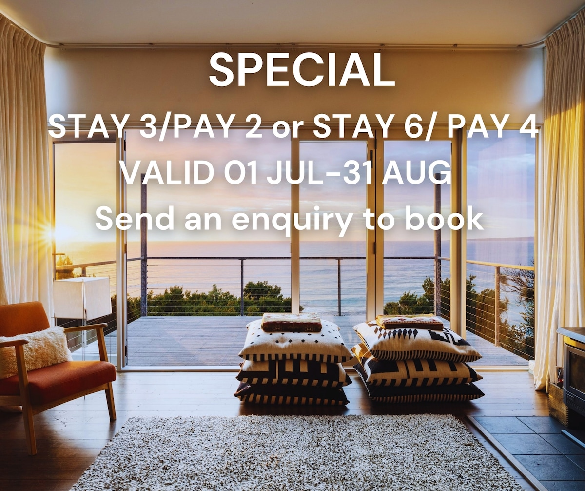 Bay View sits above the road looking across George’s Bay. The shack is a sun filled space with two living areas. The kitchen is modern and well equipped. The bathroom is newly renovated. Outside has private views to the bay. An outdoor cabana, pizza oven, firepit and bbq area make an ideal space to enjoy an evening meal. The town is a short 5 minute drive, or a lovely 30 minute walk along the bay. Surf beaches, dive spots, MTB tracks and National Parks are all within close proximity.